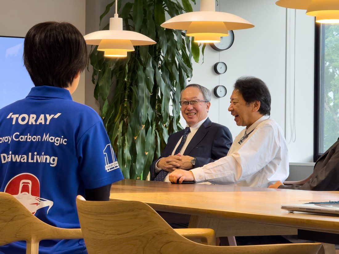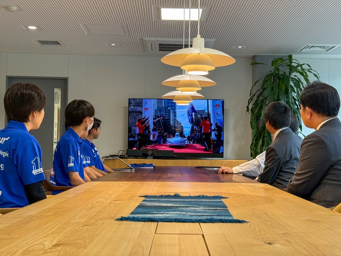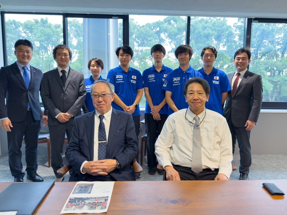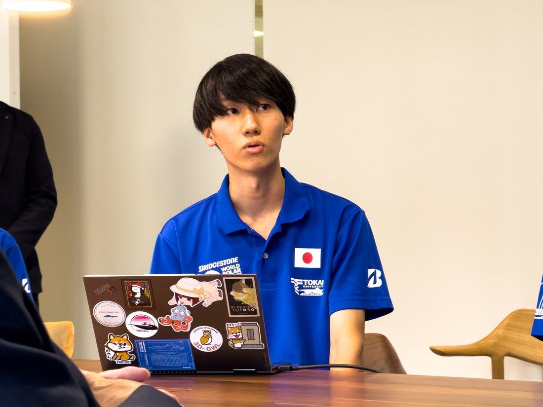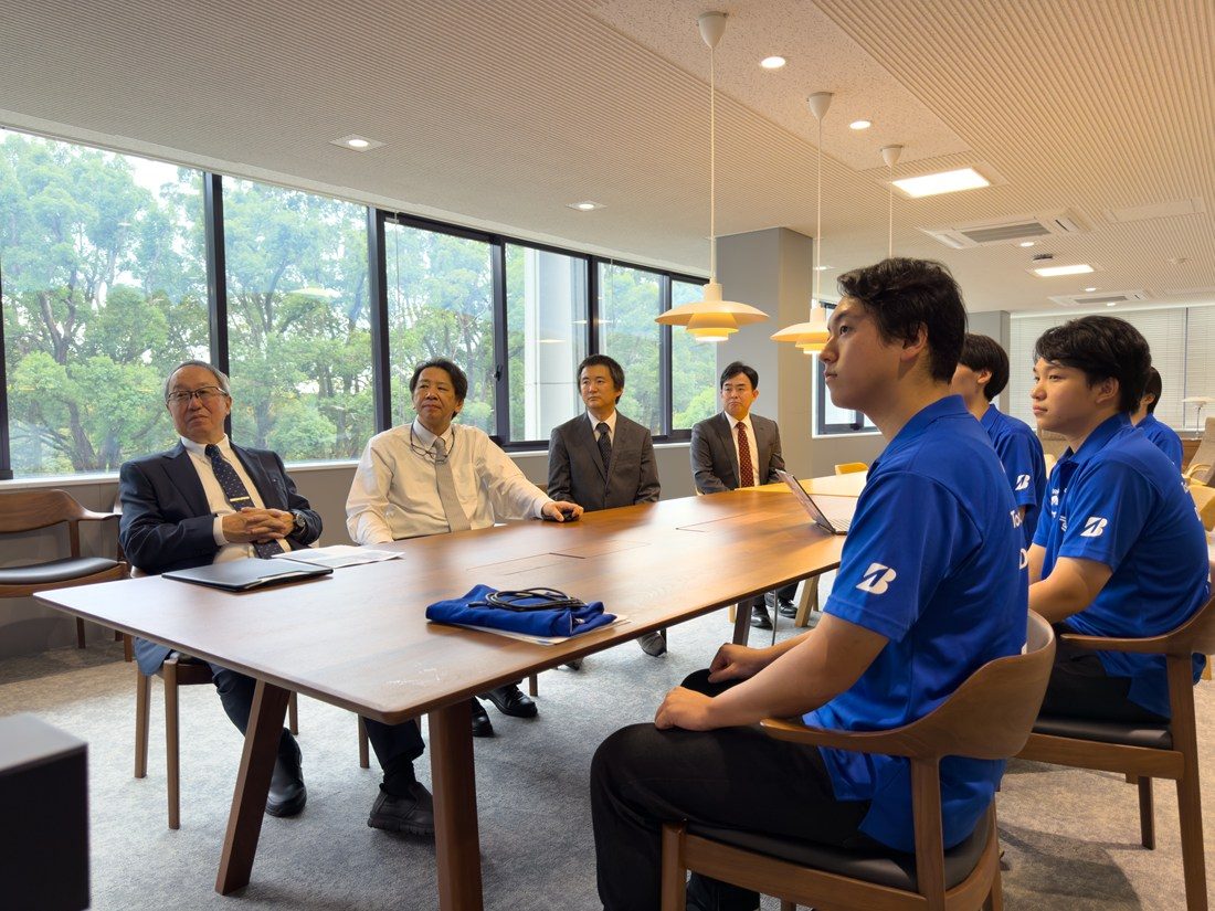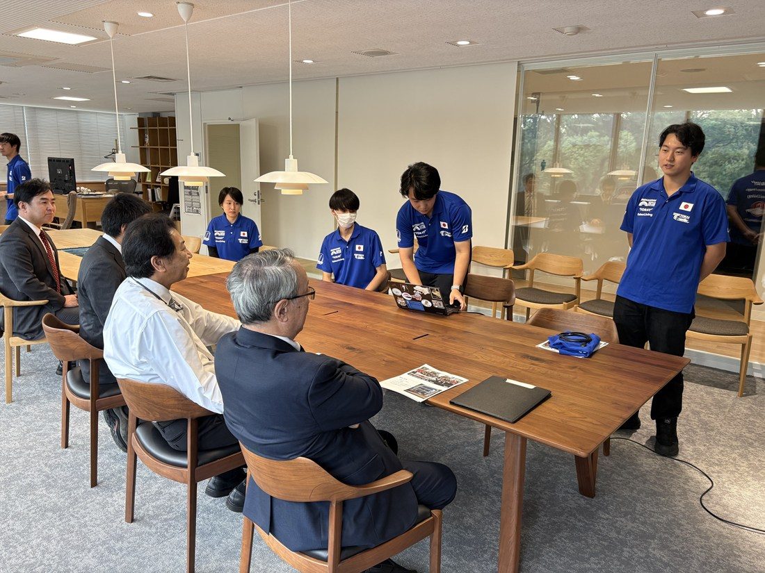 熊林さんは、「松前総長・理事長と直接お話するのは初めてでしたが、とても優しく、穏やかにエールを送ってくださいました。ソーラーカーへの愛情も感じ、“27年大会ではさらにいい結果を残してご報告したい”と決意しました」と目を輝かせていました。