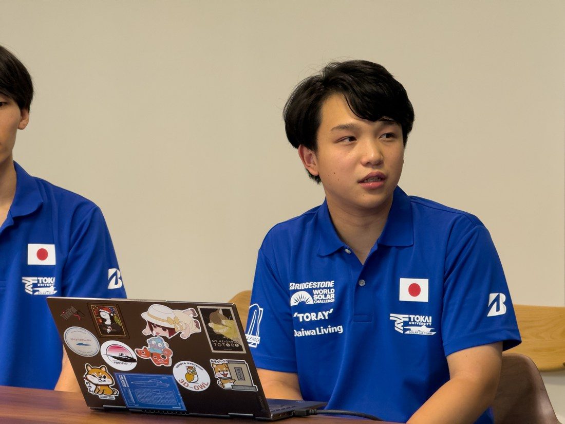 ToCoチャレ「東海大学ソーラーカーチーム」が11月1日に、湘南キャンパスで松前義昭総長・理事長と面談しオーストラリアで開催された世界最大級のソーラーカーレース「2025ブリヂストン・ワールド・ソーラーチャレンジ(BWSC)」(8月24日~31日)の大会結果を報告しました。今大会では「2025年型Tokai Challenger」で世界の強豪チームと競い、アジアパシフィック勢トップの5位に入っています。