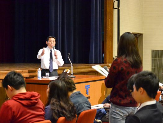 チャレンジセンターでは12月20日に湘南キャンパス松前記念館講堂で、第17回チャレンジセンターセミナーを開催しました。今回は、11月にメキシコで開催された「第1回WBSC U-23ベースボール・ワールドカップ」で優勝した日本代表チームのコーチを務めた本学文学部卒業生の安藤強氏を講師に迎え、「侍ジャパン 社会人代表監督が語る~世界一のチームのつくりかた~」をテーマに講演。湘南をはじめ、代々木・高輪・清水・熊本・札幌の6キャンパスをテレビ会議システムでつなぎ、総勢400名をこえる学生や教職員、近隣住民らが聴講しました。