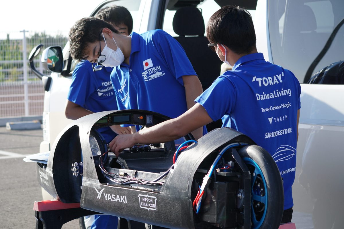 今大会は、チームメンバーに出場経験がなく、はじめての会場のため、雰囲気や仕様など具体的に把握できない中での参加となりましたが、オープンクラス3位という社会人チームにも引けを取らない結果を残すことに成功。また、18年ぶりに誕生した新型車両への注目が集まり、他レースの参加者から車両についての質問や見学がなされ、多くの人から高い関心を持っている様子も見られました。