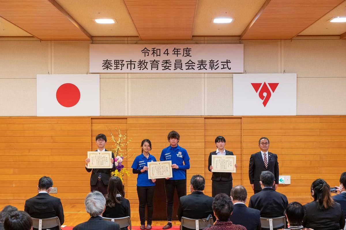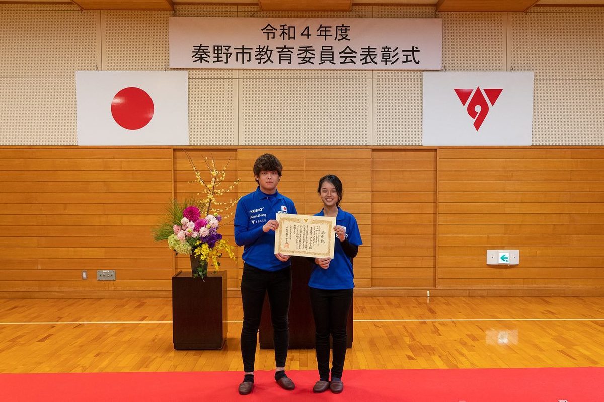 1月21日にメタックス体育館はだので開かれた表彰式には、プロジェクトリーダーの宇都一朗さん(大学院工学研究科電気電子工学専攻1年次生)とギセラ・ジョアン・ガニさん(工学部応用化学科4年次生)が出席。宇都さんは、「2年連続で表彰していただき、とてもうれしく思います。秦野市教育委員会をはじめ、日ごろから応援してくださる関係者の皆さまに感謝しています」と話し、「10月にはオーストラリアで開催されるブリヂストン・ワールド・ソーラー・チャレンジに出場する予定です。通常は2年1回のペースで開かれている世界大会ですが、新型コロナ禍で前回大会が中止となり今年が4年ぶりの開催となります。2011年以来となる総合優勝を目指してメンバー全員でマシンの開発を進めており、世界一となったチームとして来年もまた表彰してもらえるよう頑張りたい」と抱負を語っています。