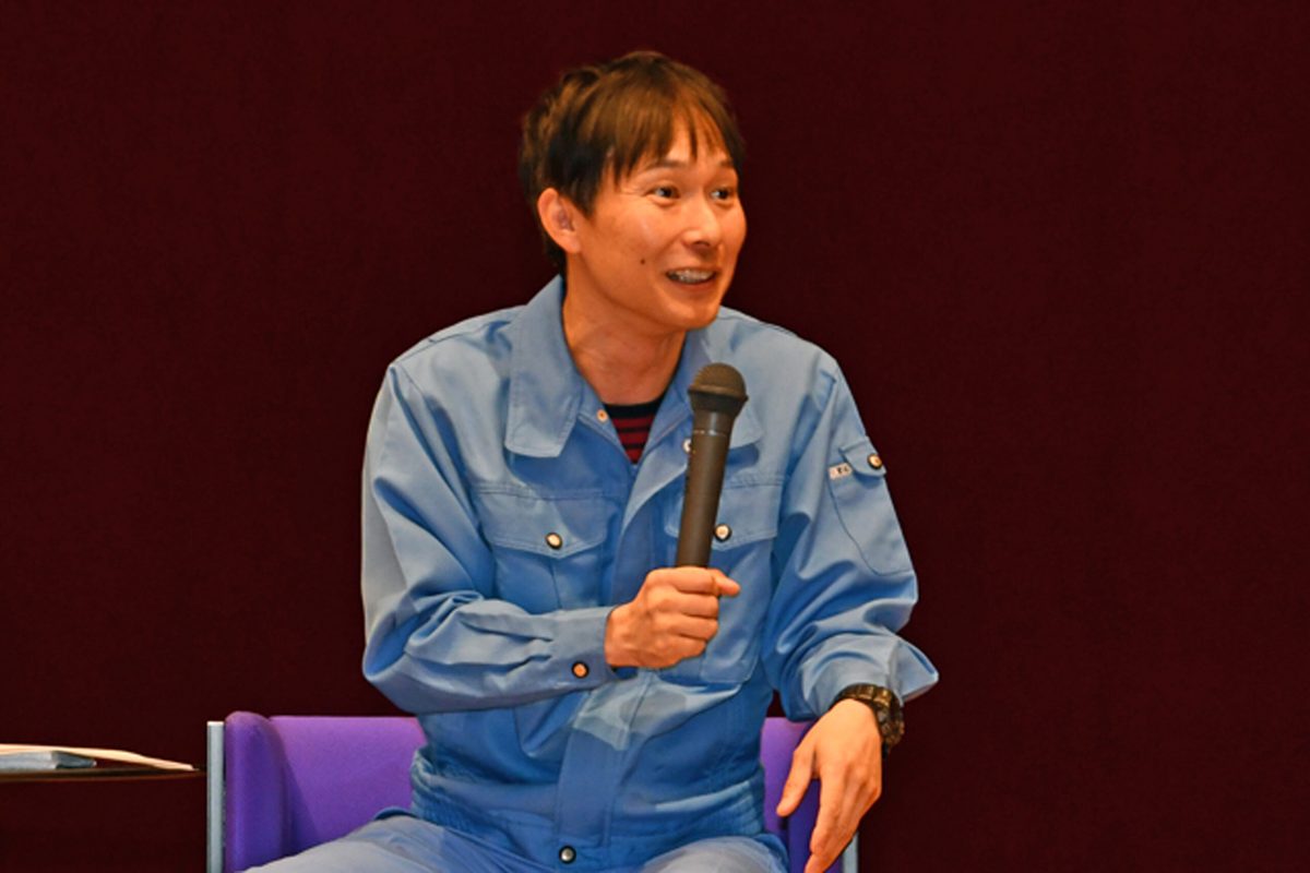 当日は、本センターのチャレンジプロジェクトのメンバーら学生が多数聴講。3部制で行われ、1部ではお笑い芸人として活躍しながら、ゴミ清掃員としても働き、現在は「ごみ研究家」としても活動するマシンガンズの滝沢秀一さんがゲストとして登壇しました。サヘルさんが「清掃員になろうと思ったきっかけは?」と問いかけると、滝沢さんは、「芸人の仕事が減ったときに、アルバイトとして始めました。それから11年間続けていますが、まだまだ使えるものや食べられるものが捨てられていることに日々驚いています」と回答。「さまざまな商品が安く買えるようになり、日本人はものへの愛着を失ったように感じています。“また買えばいい”“新しいものにしよう”とすぐにごみとして捨ててしまう。日本のごみ処理能力から分析すると、22.5年後にはごみが捨てられなくなってしまうという意見もあります。一人が努力して100歩進めるよりも、100人が一歩を進める方が、簡単。持続可能な社会をつくり上げるためにも、今できることから生活を見直してみましょう」と語りました。