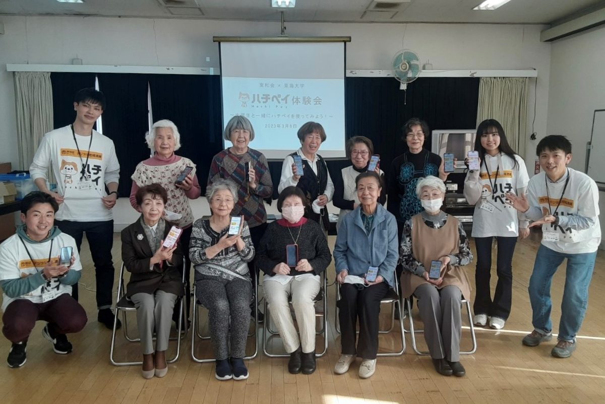 スマホサロンでの経験を生かして開催したスマートフォン勉強会では、参加者は渋谷区キャッシュレス決済アプリ「ハチペイ」をダウンロードするとともに、プロジェクトメンバーや同区の高齢者福祉課、産業観光課の担当者がサポートしながら、実際に近隣商店で商品を購入しました。参加者からは、「電子決済はとても難しいものというイメージがあったけど、使ってみたら思っていたよりも簡単だった」「学生さんと話しながらハチペイの使い方を覚えられて楽しい時間を過ごせた」といった声が聞かれました。