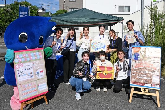 チャレンジプロジェクト「Global Innovation Project(GIP)」のミニプロジェクト「つなげ隊」と湘南キャンパスの公認サークル「スマブラサークル」が9月24日に、秦野市街で開催された「秦野たばこ祭」に参加しました。「つなげ隊」は、謎解きクイズラリー「トレジャーハンター 秦野ミリョクみっけ隊」を運営。「スマブラサークル」は、『大乱闘スマッシュブラザーズ』の体験ブースを出展しました。
