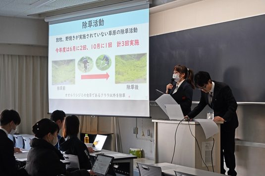 TSRPの松尾大葵さん(工学部3年次生)が、「ともに活動してくれたメンバーに感謝したい。3月には北海道でロケットの打ち上げを行い、様子を配信する予定ですのでぜひご覧ください」と話し、TKPの湯浅龍馬さん(情報通信学部3年次生)は、「我々は品川キャンパスと湘南キャンパスの学生が一緒になり、高輪地域を盛り上げようと活動している団体です。これからも地域貢献と活性化に努めていきたいです」とコメント。阿蘇は箱舟プロジェクトの次年度プロジェクトリーダーを務める米倉咲良さん(農学部4年次生)は、「来年度はこれまで行ってきた動植物の保全活動に加えて、新たなイベントも展開する予定です。今回の報告会で、他のプロジェクトの発表から得た情報も生かしながら活動していきたい」と話していました。