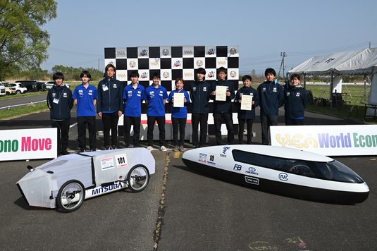 また、エコノムーブ・ライトではレース開始直後から2番手でレースを進め、終盤に逆転。2位とわずか300m差ながら、16kmを走って優勝を決めました。ドライバーの亀田悠貴さん(同)は、「エネルギー残量やほかのチームのマシンの様子を見ながら落ち着いてレースを進められました。少し緊張もしましたが、優勝できてうれしい」と振り返りました。