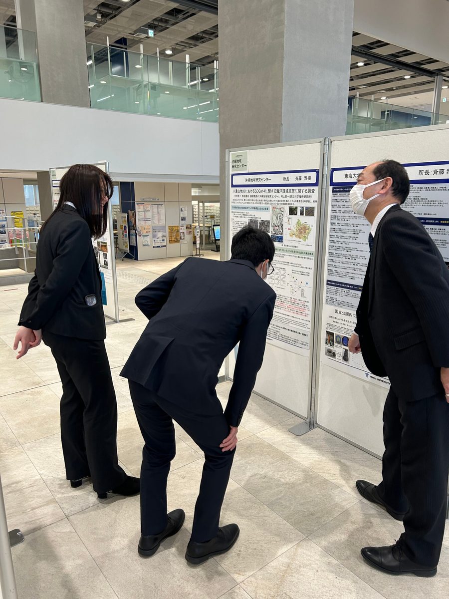2025年2月21日、東海大学湘南キャンパス19号館で研究交流の機会「TOKAI Research ColLab2024」が開催されました。本学のスケールメリットを活かしたこのイベントでは、「総合研究機構プロジェクト研究成果報告発表会」や「ランチョンセミナー」「CNGRシンポジウム」等、多彩なプログラムと併せて、本学付置研究所における年間の研究成果報告、事業に関する報告を「研究Day2024」のブースにパネルスペースを設けてポスターセッションを行いました。沖縄地域研究センターは、斉藤雅樹所長をはじめ、各プロジェクト研究のリーダーと西表島常駐職員が参加し、成果の発表とコミュニケーションを図る機会を頂きました。
