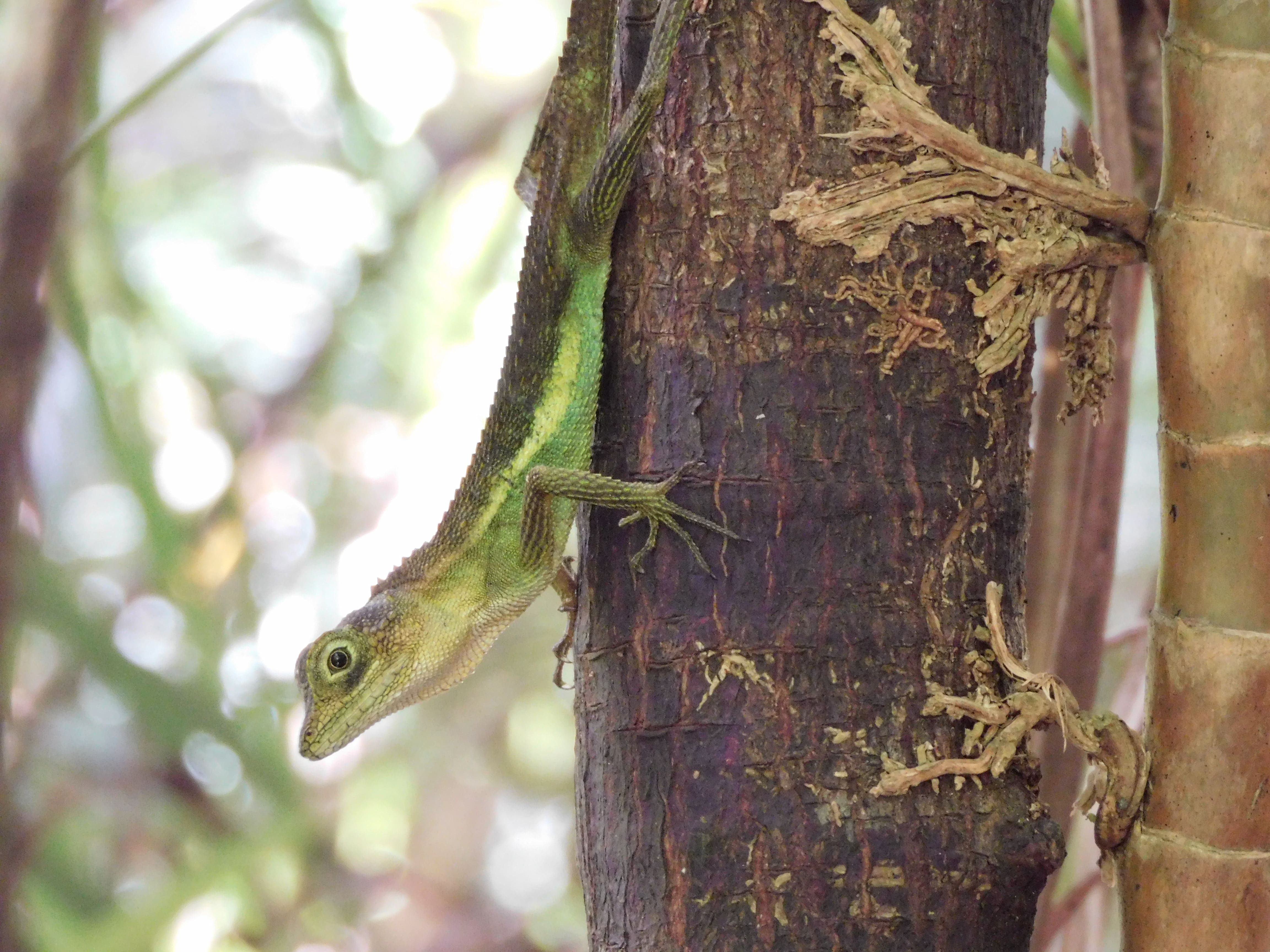 ・林道での散策ではヤエヤマセマルハコガメやサキシマキノボリトカゲなど多くの爬虫類を見ることができた。渓流の近くではアオスジアゲハなどの昆虫が飛び交っており、多様な環境を感じ取ることができた。