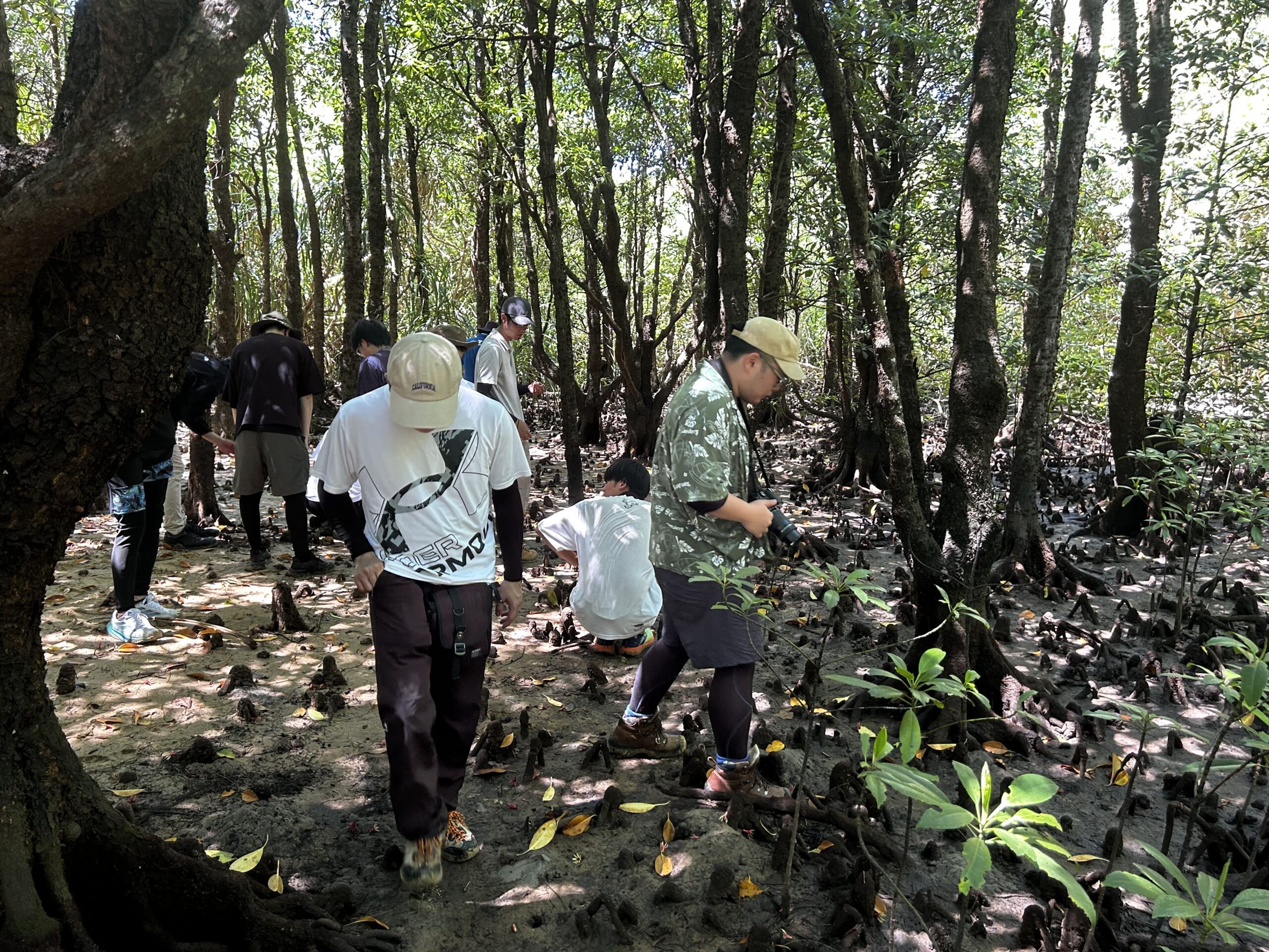 ・西表島での実習を通して、一番実感したことは生物相が北海道と全く違うということです。亜熱帯という気候帯は北海道を含む亜寒帯とは大きく違い、日射が強く、気温・湿度が高いことや、それにともなって植物の生育の仕方や生育できる種が異なり、種の豊富さが多くなることで生産者である植物だけではなく、消費者となる昆虫や甲殻類など、他の生物種へも影響を与えていることを肌で感じることができました。