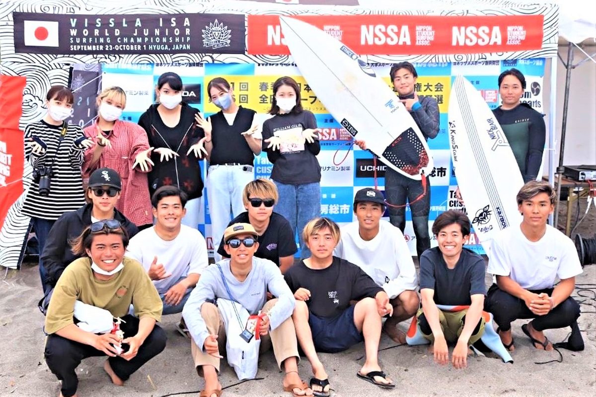 湘南校舎で活動する「サーフィンサークルCORE」が、6月11日に千葉県南房総市の千倉海岸で開かれた日本学生サーフィン連盟(NSSA)が主催する「第51回春季全日本学生サーフィン選手権大会」に出場し、団体戦で準優勝しました。本大会は、同日に開催された「第56回全日本サーフィン選手権大会学連支部予選」にエントリーしていない選手が出場できるもので、「メンBクラス」「フレッシュメンクラス」「ウィメンBクラス」の3クラスで実施されました。「メンBクラス」で野口海斗選手(工学部4年次生)が3位、駒崎仁耶選手(文化社会学部3年次生)が4位に入賞。この結果から、各クラスの総合得点で競う団体戦での準優勝につながりました。