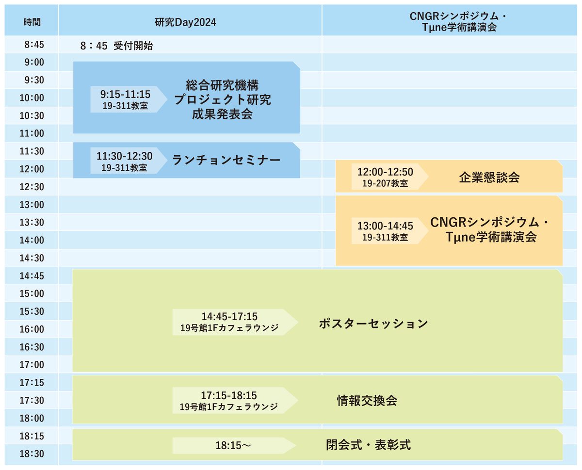 ※受付は8:45から開始します。なお、12:00~14:45のCNGRシンポジウム・ Tµne学術講演会企画への参加には、参加者登録が必要です。