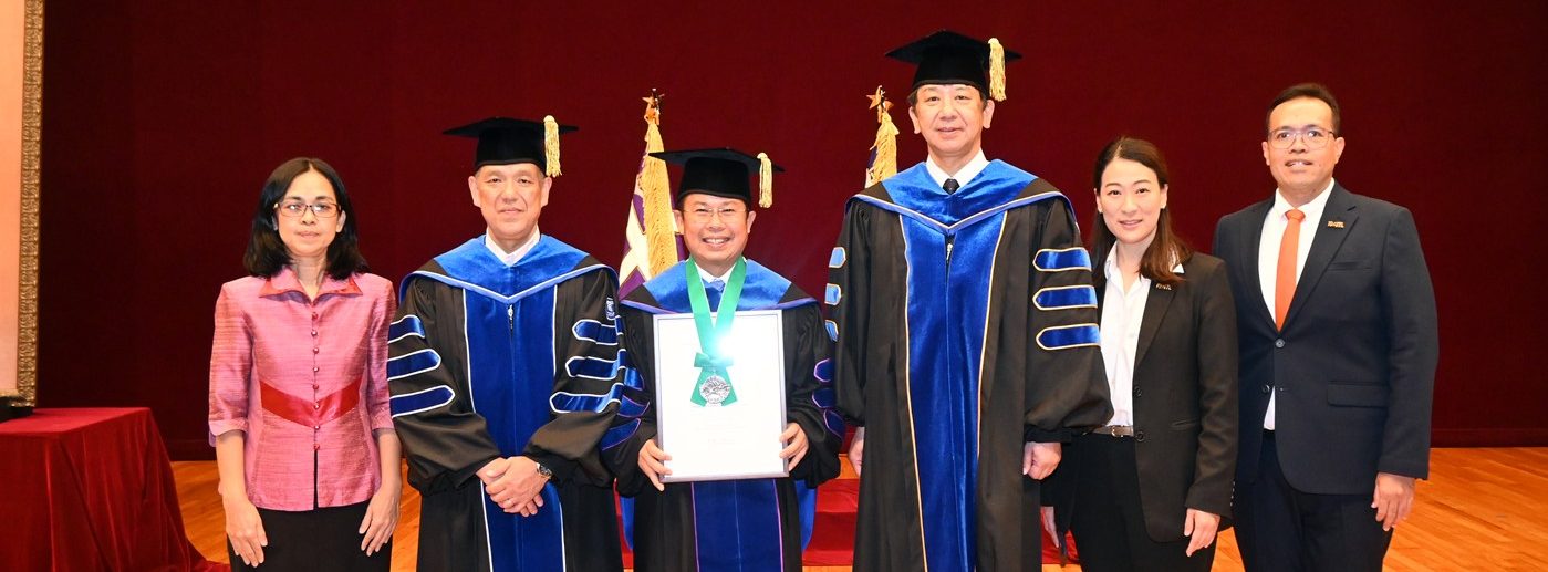 コムサン マリーシー学長は1993年にKMITLにおいてConstruction Engineeringの学位を取得。98年に本学別科日本語研修課程で日本語を学び、翌年には本学大学院工学研究科土木工学専攻博士課程前期に入学しました。その後、同研究科博士課程後期に進み2005年に博士(工学)の学位を取得しました。帰国後はKMITLで教員としての職務に従事し、工学部長や副学長などの役職を歴任。23年3月に学長に就任し、日本型高等専門学校の教育制度を本格的に導入したKOSEN-KMITL(19年に開校)の初代校長も務めており、24年には両国の学術交流及び友好親善への功績が認められ、日本国外務省より外務大臣表彰を受けられました。今回の名誉博士の学位は、同国における学術の発展と人材育成、また両国間の学術交流の推進においても指導的な役割を果たしたことを高く評価したものです。