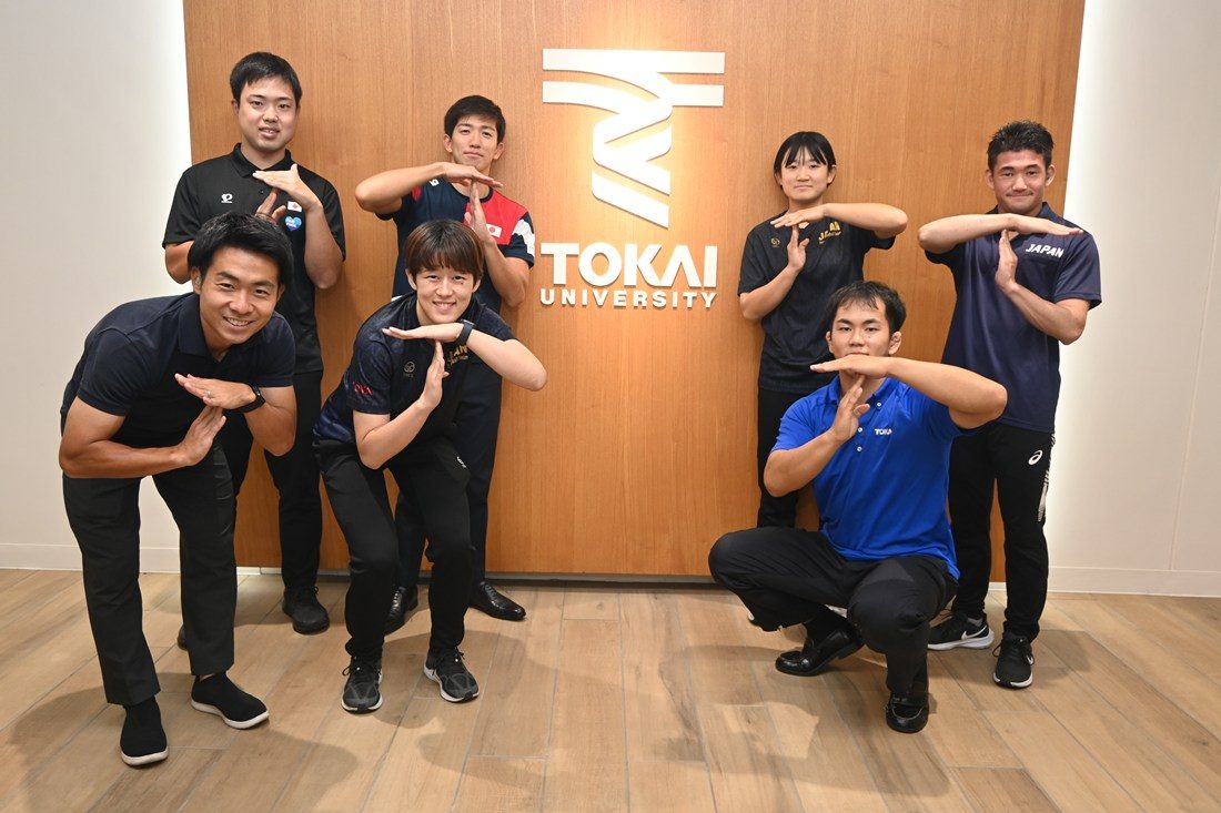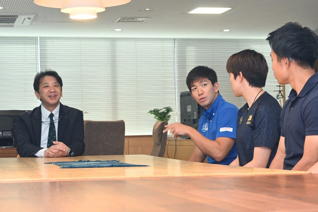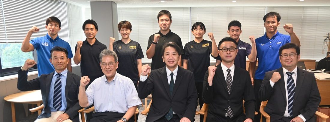 11月15日(土)から26日(水)まで東京都を主会場に日本で初めて開催される聴覚障がい者の国際スポーツ大会「東京2025デフリンピック」の日本代表に、本学から卒業生を含む8選手が選出されました。9月25日には7選手が湘南キャンパスを訪れ、木村英樹学長、濱本和彦副学長を表敬訪問しました。
