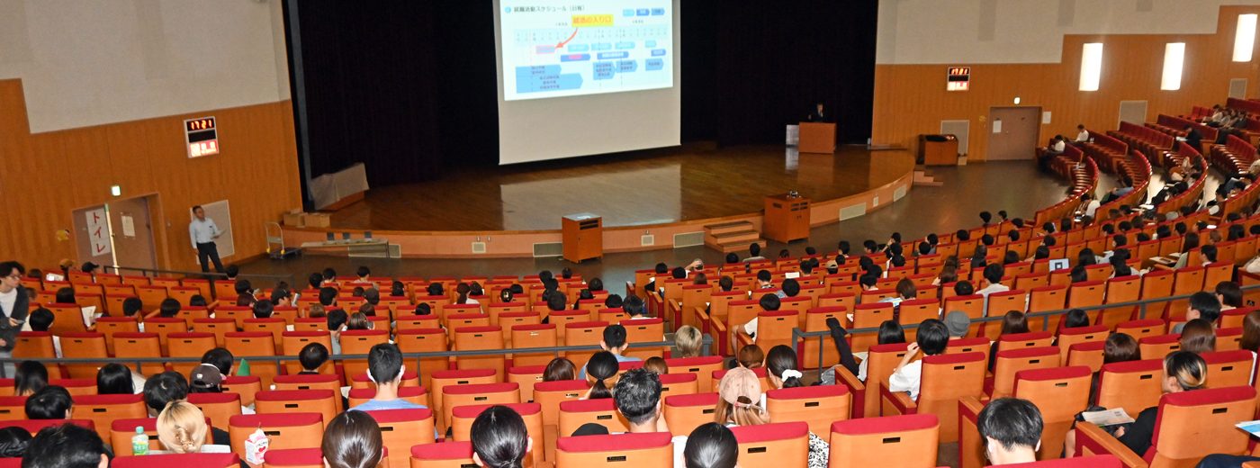 湘南キャンパスで9月25日、26日、30日に、学部2年次生を対象にした「進路ガイダンス」を開催しました。学生たちが卒業後のキャリアを意識して大学生活を過ごすとともに、就職活動の本採用選考に向けて準備を進めるきっかけにしてもらおうと、キャンパスライフセンター(CLC)キャリア担当が2023年度から開いているものです。今回は学部別に3回に分けての実施としました。