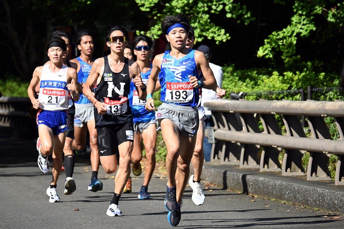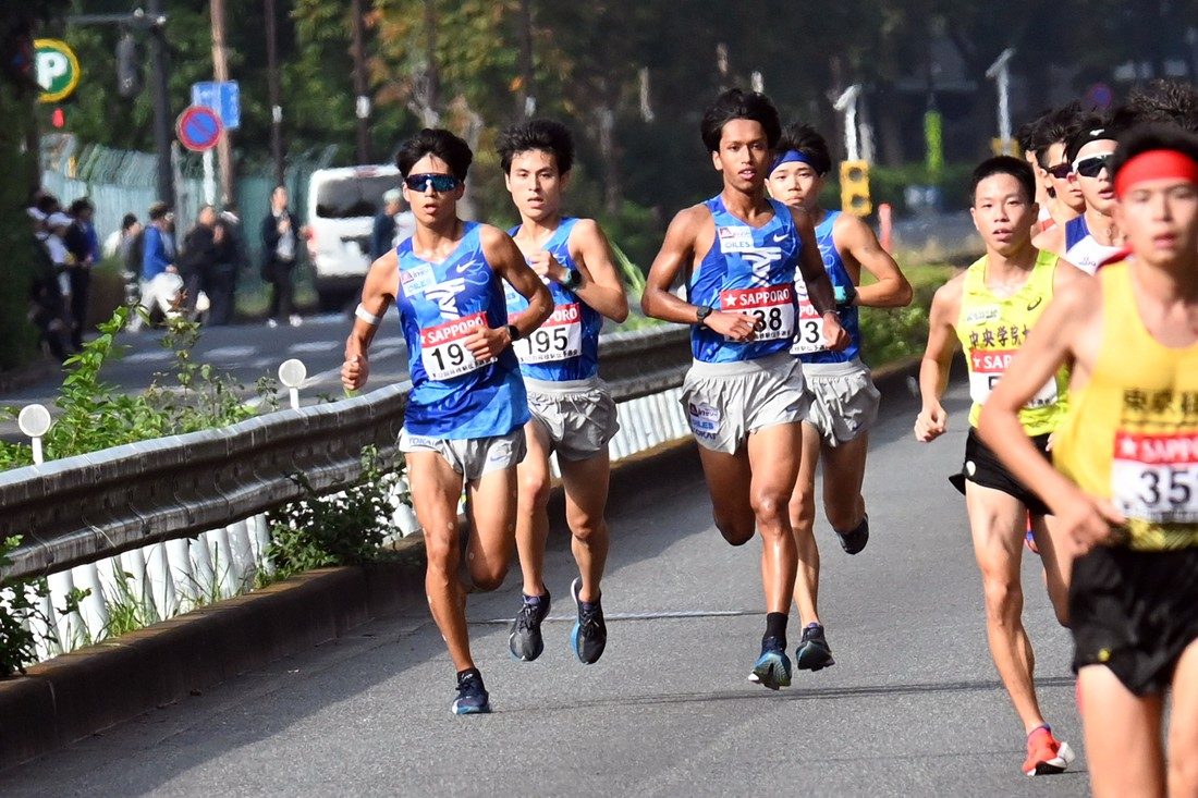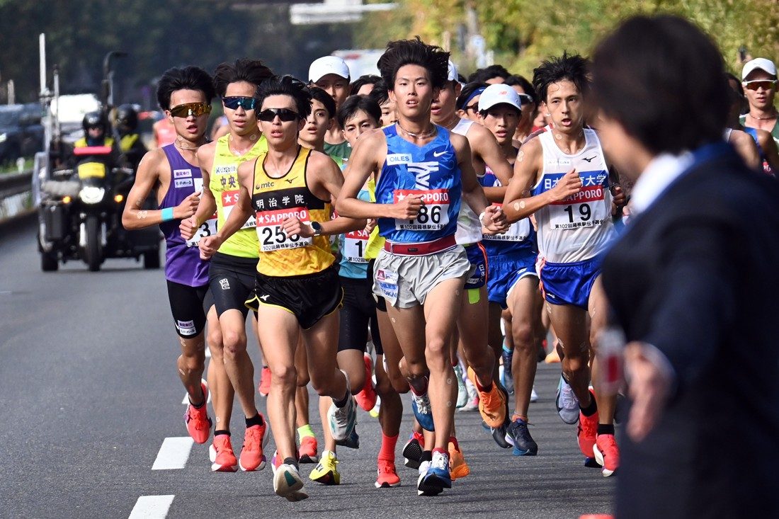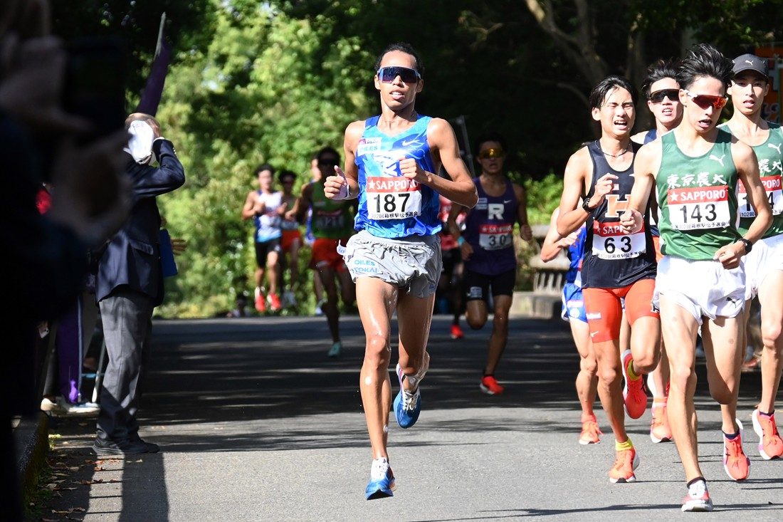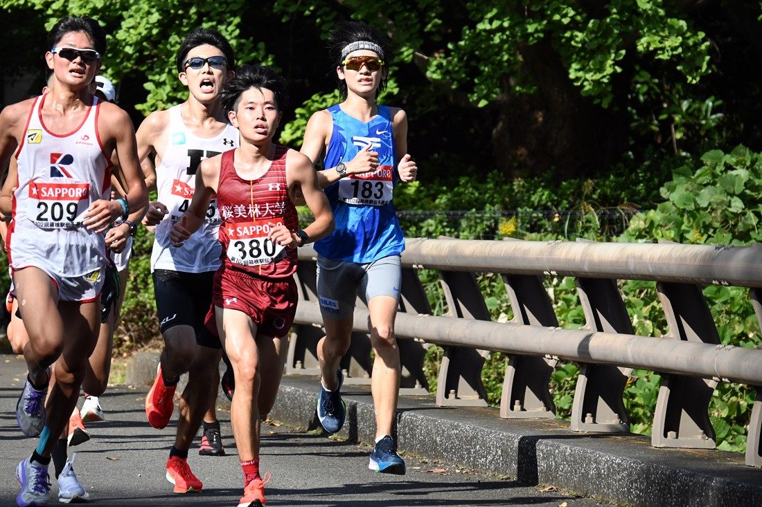 同市の陸上自衛隊立川駐屯地から国営昭和記念公園まで、21.0975kmのコースで実施された予選会には42大学が出場。本学は花岡寿哉駅伝主将(情報理工学部4年次生)が日本人4位となる全体の11位でゴールし、永本脩選手(体育学部3年次生)が22位、兵藤ジュダ選手(同4年次生)が25位と好走。チーム8番手までのランナーが100位以内に入る総合力の高さを見せ、合計10時間34分07秒で5位となりました。