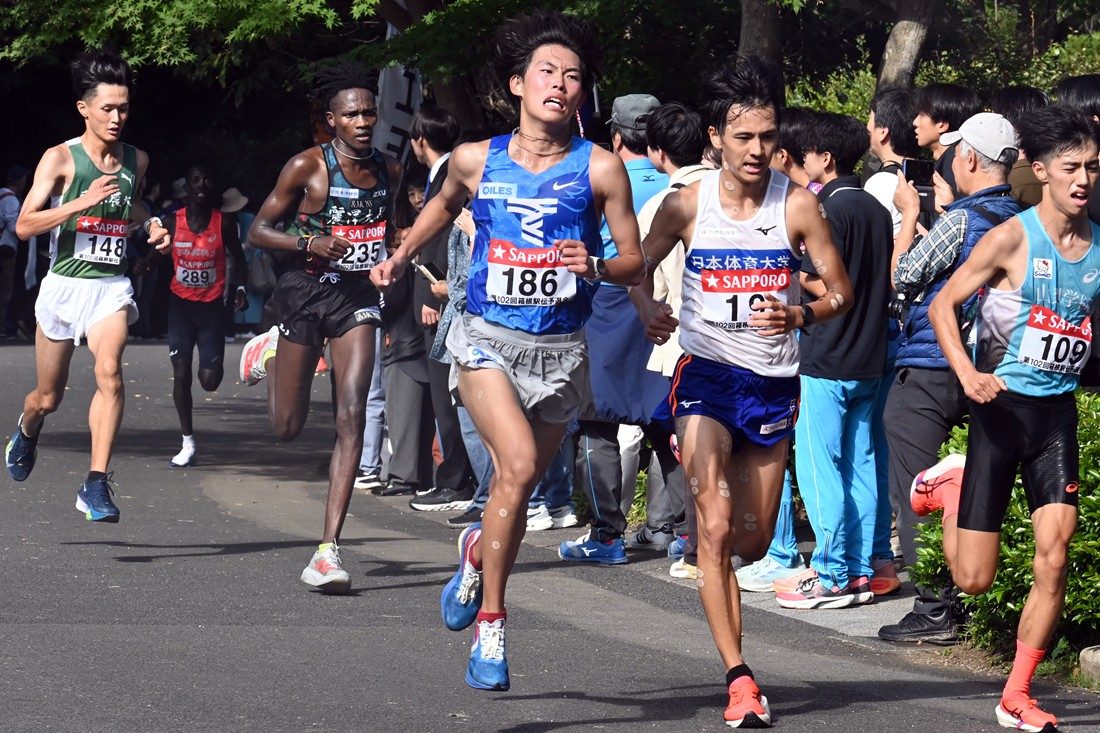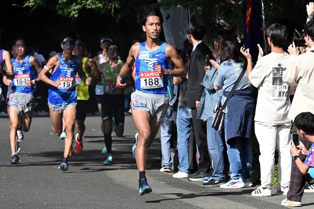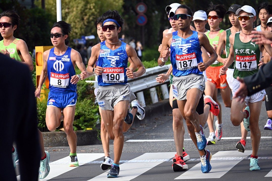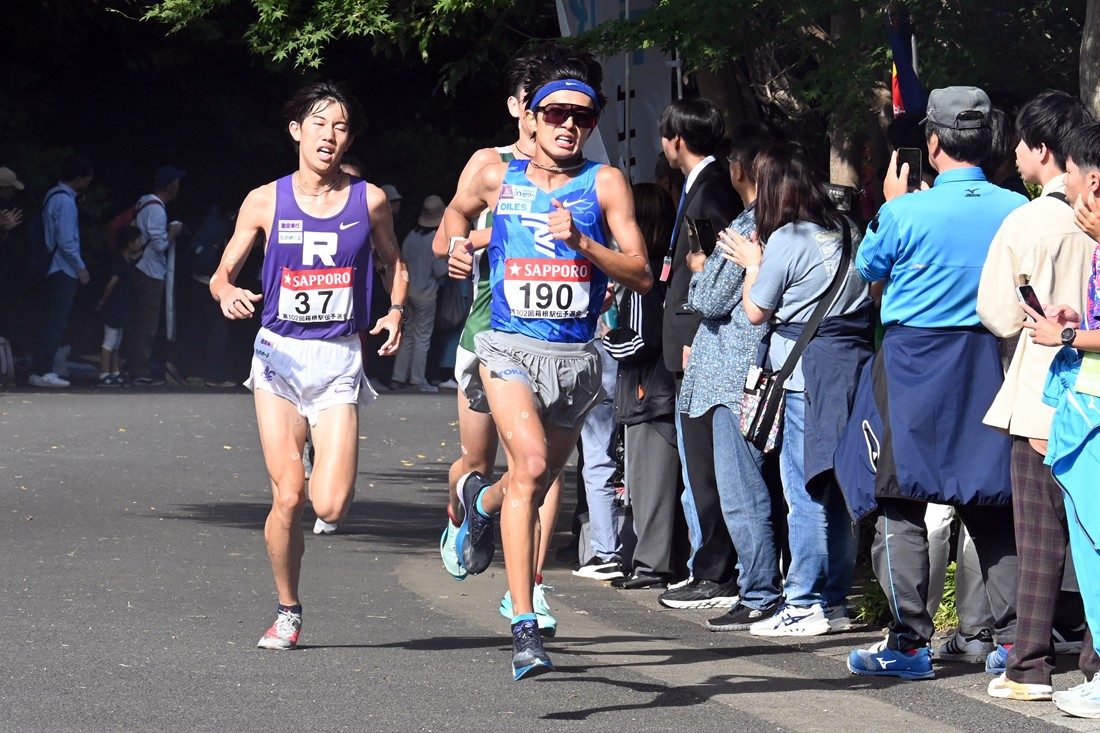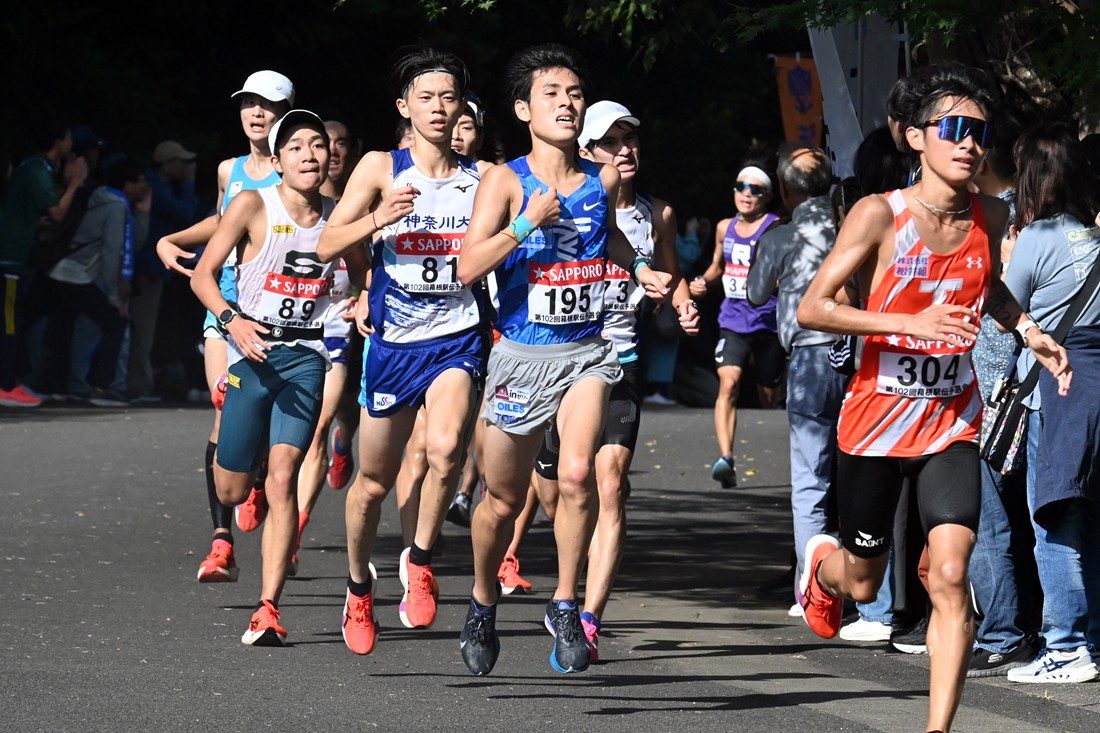 同市の陸上自衛隊立川駐屯地から国営昭和記念公園まで、21.0975kmのコースで実施された予選会には42大学が出場。本学は花岡寿哉駅伝主将(情報理工学部4年次生)が日本人4位となる全体の11位でゴールし、永本脩選手(体育学部3年次生)が22位、兵藤ジュダ選手(同4年次生)が25位と好走。チーム8番手までのランナーが100位以内に入る総合力の高さを見せ、合計10時間34分07秒で5位となりました。