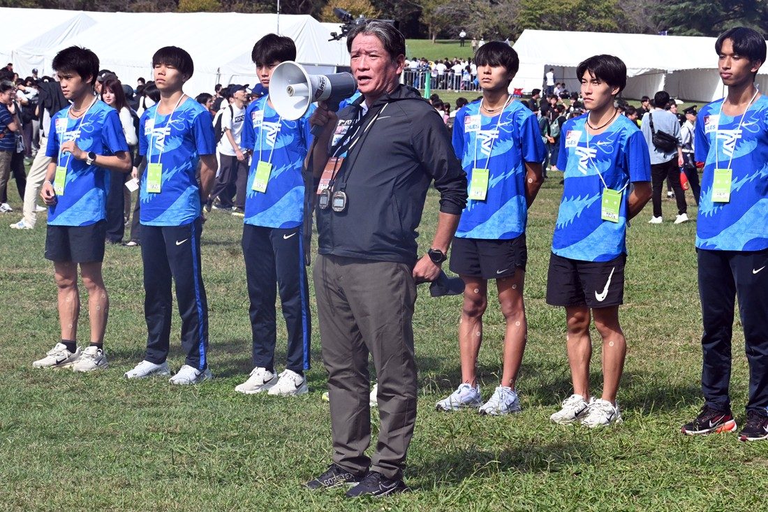 レース後、応援に駆けつけた学生や卒業生、保護者らを前に両角速駅伝監督(スポーツプロモーションセンター教授)は、「本戦に出ることは当たり前ではありません。苦しい戦いを経て部員全員で勝ち取った出場権。この1年いろいろなところで頑張れと声をかけていただき励みになりました。今日も皆さんの声援が選手の大きな力になりました」と感謝を述べました。花岡主将は、「昨年悔し涙を流したこの場所でリベンジを果たすべく、チーム全員で走り込んできました。この結果を通過点に、11月2日の全日本大学駅伝対校選手権大会と箱根駅伝でシード権を獲得できるように努力を続けます。引き続き応援をよろしくお願いします」と力強く語りました。