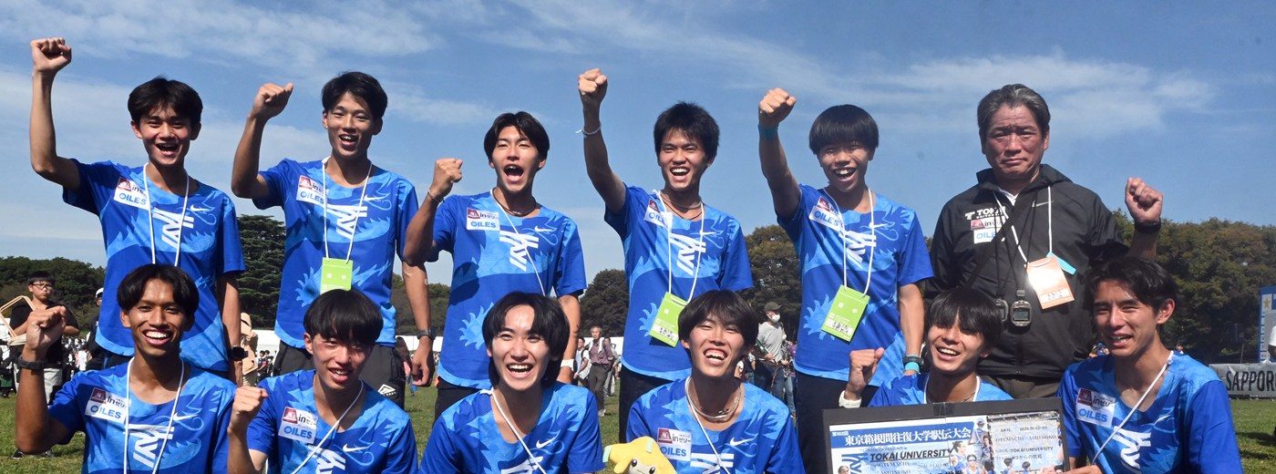 同市の陸上自衛隊立川駐屯地から国営昭和記念公園まで、21.0975kmのコースで実施された予選会には42大学が出場。本学は花岡寿哉駅伝主将(情報理工学部4年次生)が日本人4位となる全体の11位でゴールし、永本脩選手(体育学部3年次生)が22位、兵藤ジュダ選手(同4年次生)が25位と好走。チーム8番手までのランナーが100位以内に入る総合力の高さを見せ、合計10時間34分07秒で5位となりました。