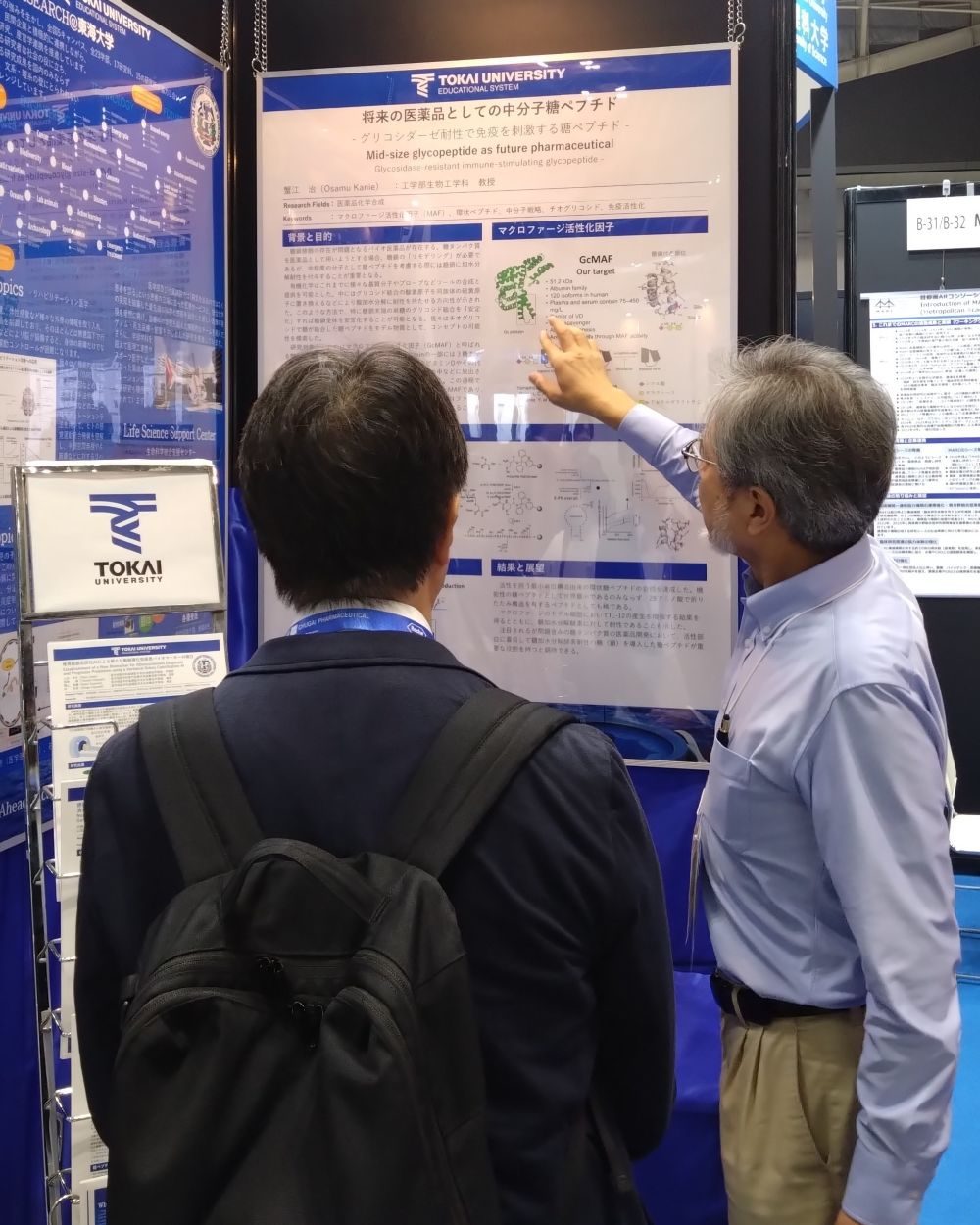 工学部生物工学科の蟹江治教授は、ビタミンDやその代謝物の運搬などに関与し、抗がん剤として期待される「マクロファージ活性化因子」(GcMAF)と呼ばれるタンパク質の研究成果を報告。GcMAFは血中に放出されると、糖加水分解酵素の作用で活性に必要な糖(αGaINAc)が切断され、抗がん剤としての効果を失ってしまうため、この糖が除去されるのを防ぐ機能(糖加水分解酵素耐性)を付与し、効果を安定させることに成功しました。