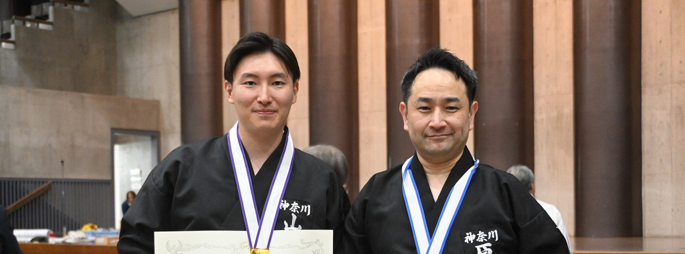 本学病院本部病院運営企画室課長の原田渡職員(工学部1997年度卒業)と九州カレッジオフィスの山本汐来職員(法学部2017年度卒業)が、10月11 日に東京武道館で開催された「第60回全日本居合道大会」の都道府県対抗優勝試合に神奈川県代表として出場し、準優勝しました。個人成績では原田職員が七段の部で第2位、山本職員が五段の部で第1位となりました。両選手は前回大会で神奈川県代表として優勝。原田職員は、57回、58回の同大会で七段の部連覇を遂げ、山本職員も前回大会で2位になるなど優秀な成績を残しています。