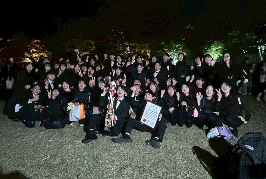主将の堀野靖興さん(同)は、「主将になってから約1年間、同期や下級生の関係性をより深くしようと積極的なコミュニケーションを心がけ、幹部メンバーとともにチームを運営してきました。大会前には、コンクールメンバー以外の学生が手作りの横断幕や合唱などで送り出してくれて、チーム一丸となって当日に臨めました。表彰式の瞬間は、4年間の集大成となった大会で金賞を取れてうれしいと思うと同時に、連続受賞の記録を継続できてホッとしました」と笑顔を見せていました。