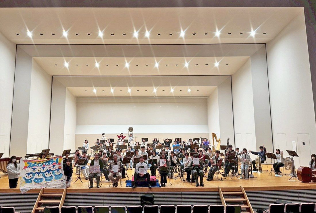 湘南キャンパスの吹奏楽研究会が10月25日に、りゅーとぴあ 新潟市民芸術文化会館で開催された全日本吹奏楽コンクール・大学の部に出場し、3年連続11度目となる金賞を受賞しました。東京都代表として出場した同研究会は、常任指揮者である福本信太郎氏のタクトで課題曲Ⅰ『祝い唄と踊り唄による幻想曲』(杉山義隆作曲)と自由曲『「スペイン奇想曲」より アルボラーダ、情景とジプシーの歌、アストゥーリアのファンダンゴ』(ニコライ・リムスキー・コルサコフ作曲)を演奏しました。