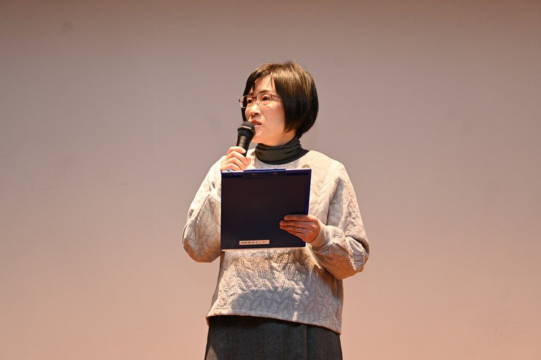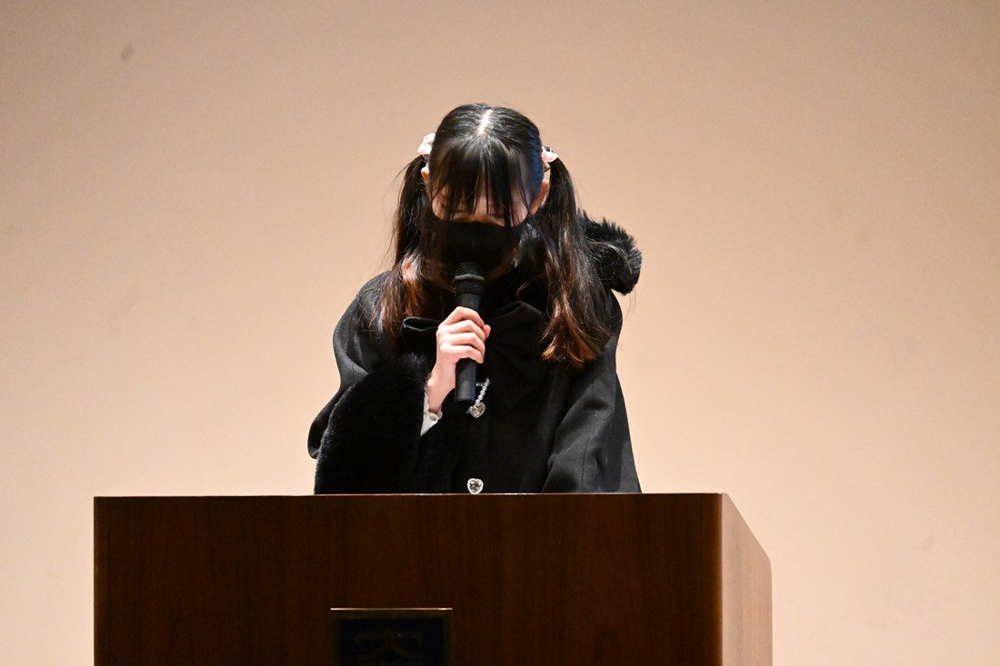 優秀賞には「蘭学が広げた私の世界」と題してスピーチした韓国出身のオ・ジスさん(協定留学生・漢陽大学)と、「偏見をこえて:わさびが教えてくれたこと」と題してスピーチした韓国出身のファン・ユビンさん(協定留学生・国民大学)が受賞しました。最後に、審査委員長を務めた田口教授から講評があり、語学教育センター長の宮崎啓教授から受賞者3名に賞状が、参加者全員に参加賞が手渡されました。
