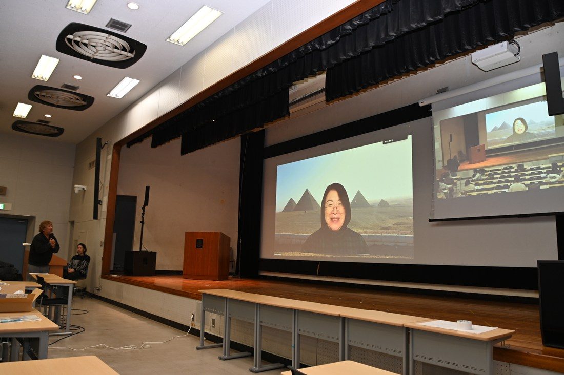 第1部では最初に、岡山県備前市のBIZEN中南米美術館の森下矢須之館長が登壇。同館が力を入れている収蔵品の魅力を来場者に伝える「館長によるサービスガイド」や、多くの収蔵品をまとめて展示する「コンビニ型展示」について説明するとともに、地域と連携したオリジナルのゆるキャラやグッズ開発などの事例を紹介しました。続いて、本学のアンデスコレクションとエジプト中近東コレクションの概要と教育・研究への活用実績について、吉田晃章教授(文学部文明学科)と山花京子教授(文化社会学部アジア学科)がそれぞれ紹介。また、国立民族学博物館の広瀬浩二郎教授が、今後の大学博物館の役割や大学教育のあり方について講演しました。