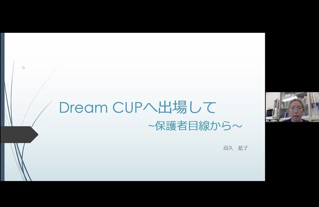 講演では初めに、体操競技部で4年間活動した中島七海さん(体育学部4年次生)が、平塚市の体操教室での活動を基に卒業研究としてまとめた「知的・発達障害のある人の体操競技~知的・発達障害のある子どもの保護者の視点から~」を発表しました。知的・発達障害がある人の余暇活動のほとんどが静的な活動であることに着目し、体操教室を継続的に開催していく必要性と人員不足などの課題を論じました。続いて、体操教室に2人の子どもを通わせる保護者の高久藍子さんが、「Dream CUPへ出場して~保護者目線から~」と題して講演。体操教室参加の経緯や、全国の小学生から社会人、日本代表まで幅広い世代の選手が一同に会し競技や強化練習会を行う大会「DREAM CUP」への参加を振り返り、「子どもたちにとって体操はただ“楽しい”で終わってしまうスポーツでしたが、大会でほかの選手の演技を見て『自分にもできるかな、やりたいな』と話すようになり、競技への意欲や自己肯定感が上がったように感じました」と話しました。