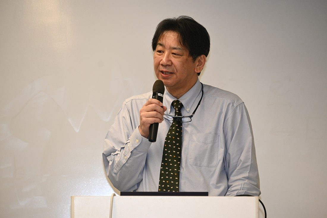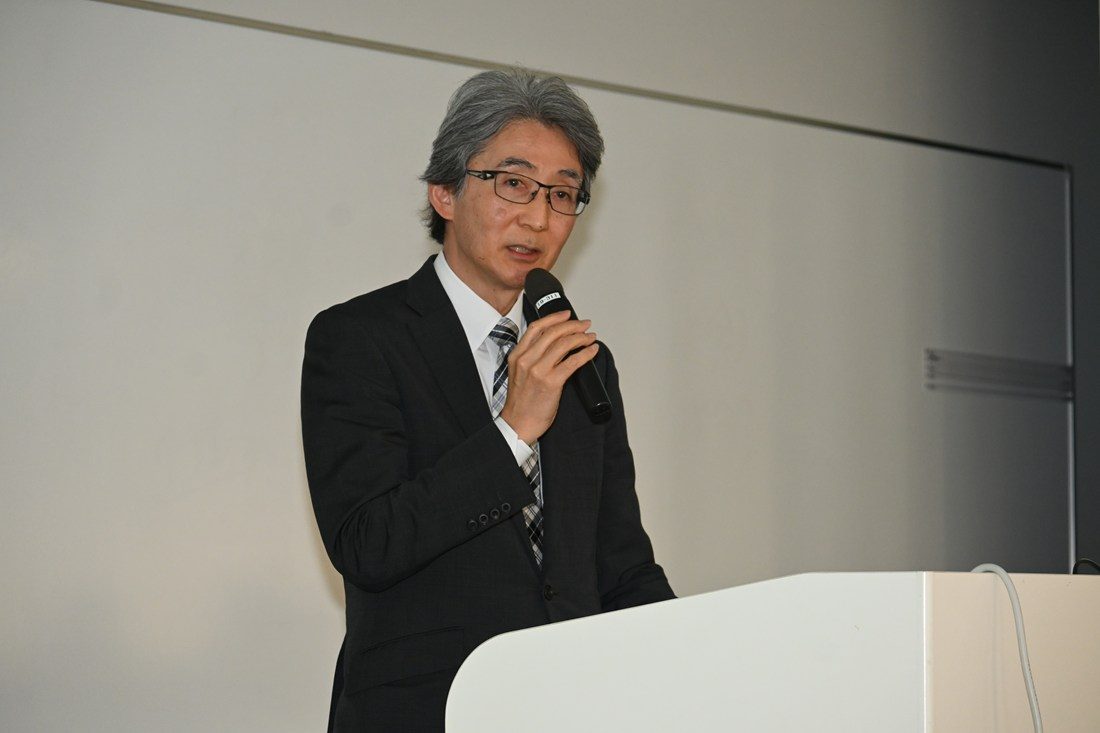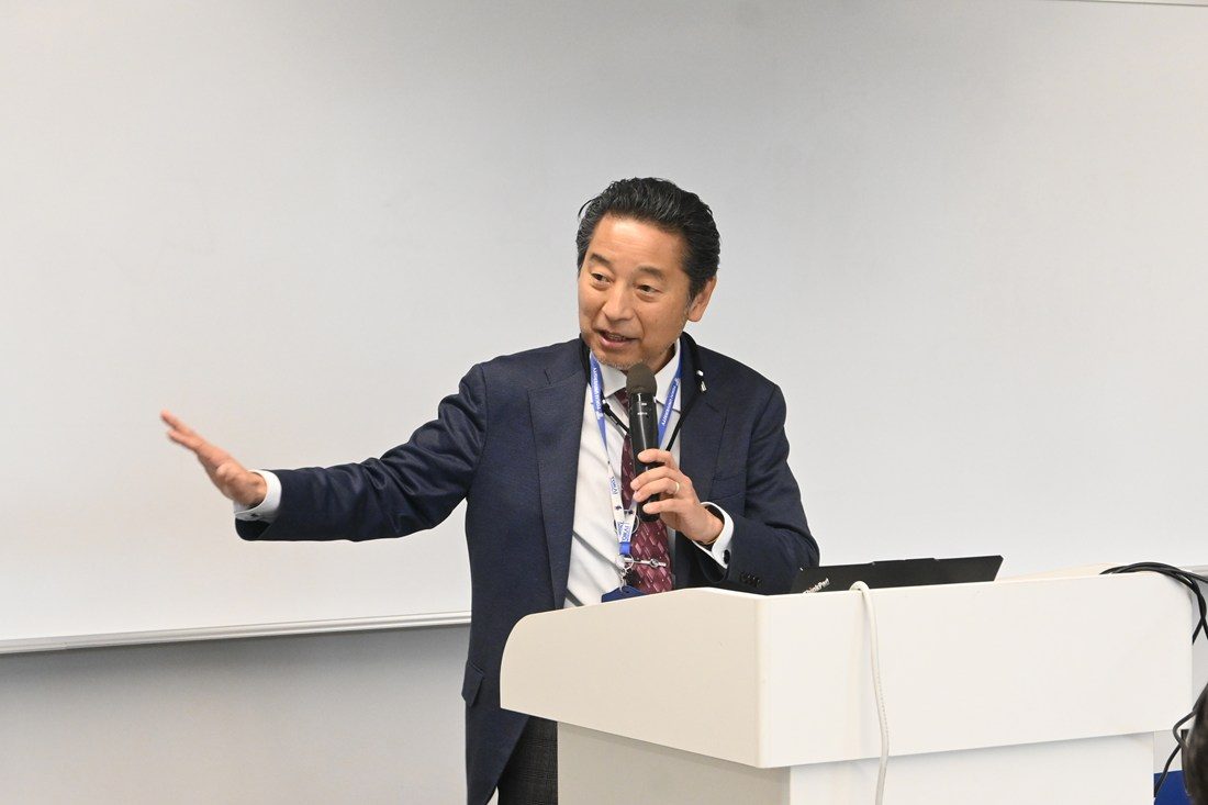 続いて、秦野伸二副学長(研究担当)が「東海大学の研究支援体制について」をテーマに講演しました。本学が総合大学として発展してきた歩みを紹介し、「総合研究機構を中心とした共用設備の戦略的運営や、80名以上の技術職員による支援体制、遠隔利用やデータ管理の高度化、URA体制の強化など、体制整備を進めています。研究インテグリティの徹底と研究力向上を両立させ、文理融合型研究を推進していきます」と語りました。また、木村英樹学長が18歳人口の減少や教員の研究時間確保といった課題に触れ、「研究と教育の両輪を強化する必要があります。研究力の質と量を高めていかなければなりません」と説明。来年度の組織改編などを通じ、「スピード感のある改革を実行していきます」と力を込めました。