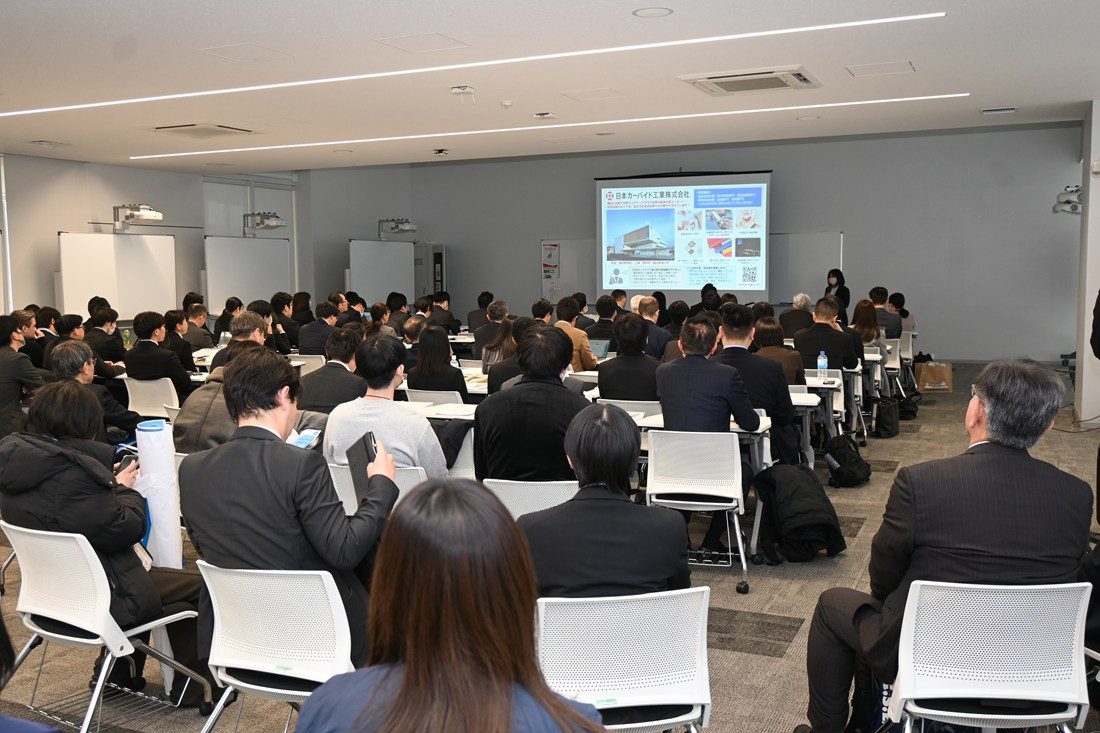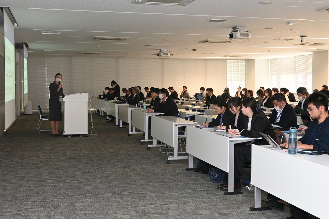 「学生×企業キャリアマッチング会」での初の試みとして、「学生フラッシュプレゼン」「企業フラッシュプレゼン」そして「学生-企業マッチングテーブル」を実施しました。「学生フラッシュプレゼン」では、国立研究開発法人科学技術振興機構(JST)による博士課程(後期)学生支援事業・通称SPRINGの採択を受けて本学が進めるTokai-SPRING SACRAの採択学生や若手研究者を中心とする約45名による、一人1分30秒の研究ショートプレゼンで自身のポスター発表をアピール。企業・団体・行政機関の約30団体による「企業フラッシュプレゼン」では、一団体3分間とコンパクトな時間で自社等の魅力を濃縮して紹介いただきました。更に「学生‐企業マッチングテーブル」として、約40社の企業・行政機関に個別テーブルを設け、学生は企業・機関担当者と30分の個別面談を行いました。3つのプログラムを通じて、学生と企業・機関のインタラクティブな交流がなされ、日ごろの研究や将来のキャリア形成について意見が交わされました。