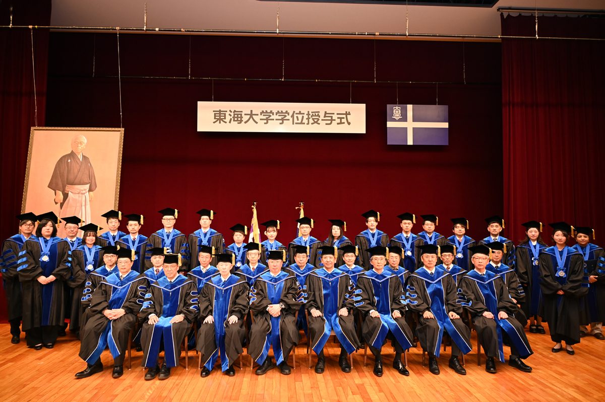 祝辞では学校法人東海大学の松前義昭総長・理事長が登壇。創立者・松前重義による文理融合の理念を解説し、「創立者は、文系の学生には自然科学との関連において人文科学の真髄を把握させる、理系の学生には確固たる人間観世界観を把握し、科学使命を自覚させると掲げていました。21世紀は科学と倫理の葛藤の時代となると言われています。皆さんが新しい文明を切り拓き、社会の活力を生み出す指導者、研究者、知識人として活躍されることを期待しています」と激励しました。