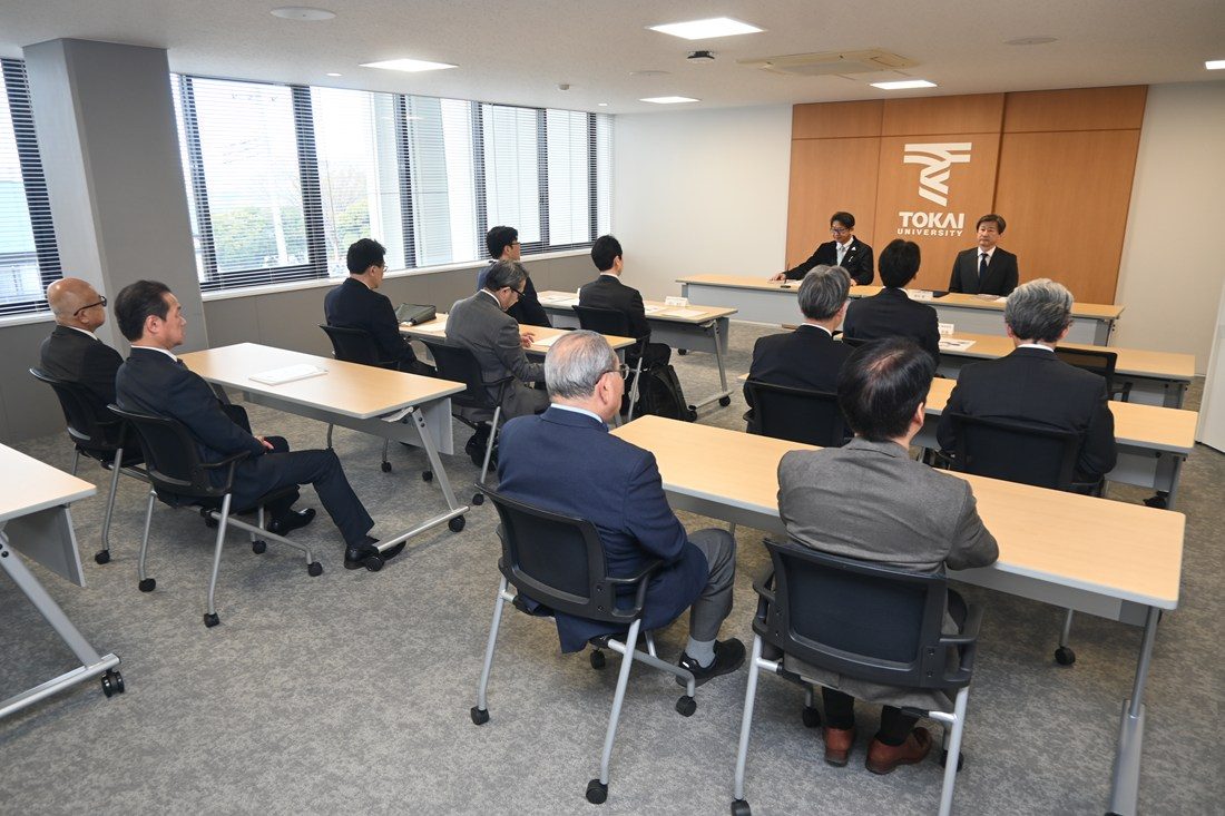 式典には、鈴木社長をはじめとする小田急電鉄の関係者のほか、木村学長、付属病院の渡辺雅彦病院長(医学部医学科教授)、付属相模高校・同中等部の中出光政校長らが出席しました。木村学長は、「小田急沿線には、湘南キャンパスや伊勢原キャンパス、渋谷キャンパスをはじめ、相模高校など学園の教育機関が多数所在しています。相互の発展だけでなく、地域の皆さまにも貢献できる関係づくりができると考えています。今後も総合的に連携を図っていきたい」とあいさつしました。鈴木社長は、「大学と鉄道会社は役割こそ違いますが、地域と向き合い、人を大切にして未来をつくるという共通点があります。東海大学が有する学術的知見と小田急の事業基盤を融合させ、沿線地域の新たな価値創出と持続可能なまちづくりにつながる実績をつくっていきましょう」と話しました。記念撮影には、小田急電鉄の子育て応援マスコットキャラクター「もころん」も登場しました。式終了後も和やかな雰囲気の中で、今後の連携について意見を交わしました。