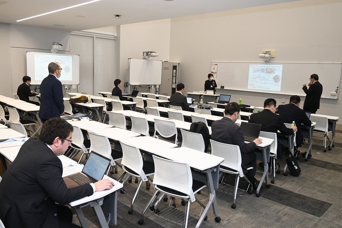初めに本研究所の岩森暁所長があいさつに立ち、「若手教員の皆さんが5年後、そして10年後、どのような研究者でありたいのか、ベテランの先生方から意見をもらいながら討論する場としていければと思います。本会でいただいたアドバイスを、今後の研究活動の参考にしてもらえれば」と語りました。続いて、本研究所特定助手の教員が、自身の研究概要を紹介。聴講した教員から、研究の意図やAI活用の可能性、他分野への応用方法などさまざまなテーマで意見が交わされました。また、総合討論・所員会議も行い、来年度の運営体制や方針について議論しました。
