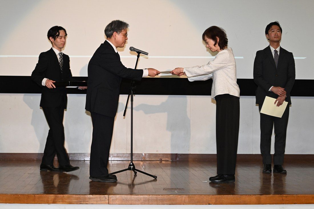 語学教育センター留学生支援教育学系の倉田尚美教授が「2025年度ティーチング・アワード」優秀賞に選ばれ、4月1日に湘南キャンパスで行われた授賞式で濱本和彦副学長(教育担当)から賞状と目録を授与されました。本学では教育の質向上を目指し、2002年度から優れた授業を行う教員らを「ティーチング・アワード」として顕彰しています。学生による授業についてのアンケートなどの結果に基づき、学長室を中心とした厳正な審査を経て決定されるもので、25年度は5名に優秀賞を授与しました。