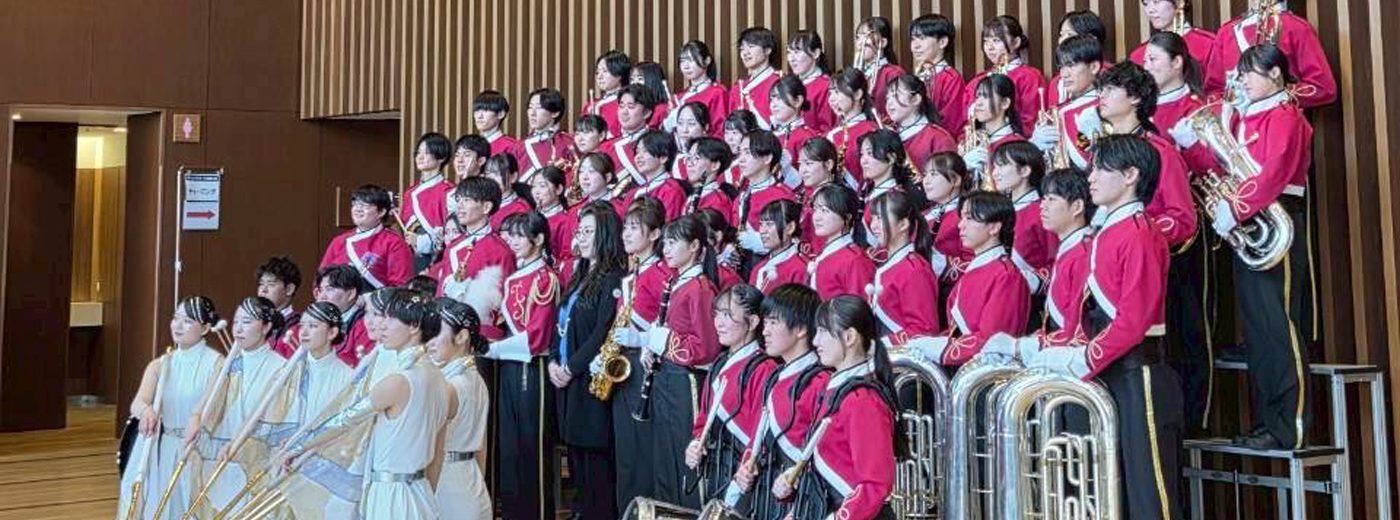 湘南キャンパスの吹奏楽研究会が2月21、22日に、大阪府・フェニーチェ堺で行われたマーチングステージ全国大会(主催:一般社団法人日本マーチングバンド協会)のコンテスト部門一般の部に出場。昨年度から挑戦している同部門で、2年連続となる金賞を受賞しました。
