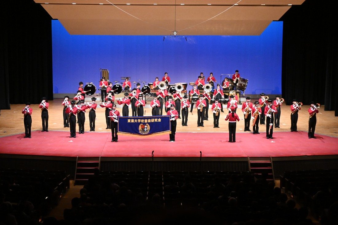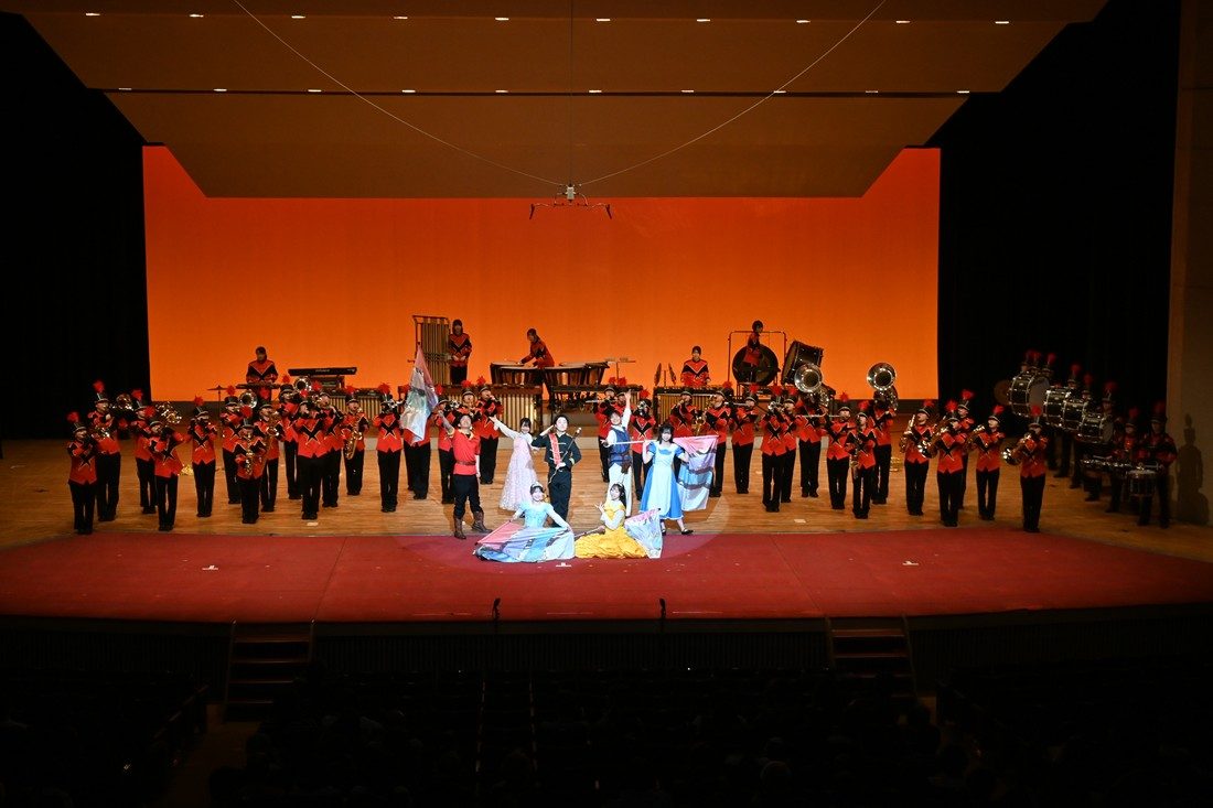 第Ⅰ部「Marching Stage」では、本研究会が、人類が初めて月への有人宇宙飛行を目指した「アポロ計画」のスタートから月に立つまでを描いた『Man on The Moon~A Difficulty that Challenges~』を、相模高がディズニーの名作の世界を絵本をめくるように巡る『Once Upon a Time』を披露し、合同ステージでも会場を沸かせました。続いて第Ⅱ部「Symphonic Stage」では、本研究会が『アルヴァマー序曲』(J.バーンズ)、『吹奏楽のための第3組曲「バレエの情景」』(A.リード)、『パルクール』(S.ヘイゾ)を演奏。相模高は『東海大相模シン歌謡大作戦2026春~moment~』として、米津玄師の『IRIS OUT』やVaundyの『Tokimeki』といった最近のJPOPを歌やダンスを交えて披露したほか、『Millky Way』(J.マイケル)も演奏しました。第Ⅲ部「Joint Stage」では、2026年度全日本吹奏楽コンクール課題曲Ⅱ『ザ・ガーズ』(星出尚志)を90名で、『アルメニアン・ダンス パートⅠ』(A.リード)を総勢110名で演奏し、アンコールでは合唱も披露しました。