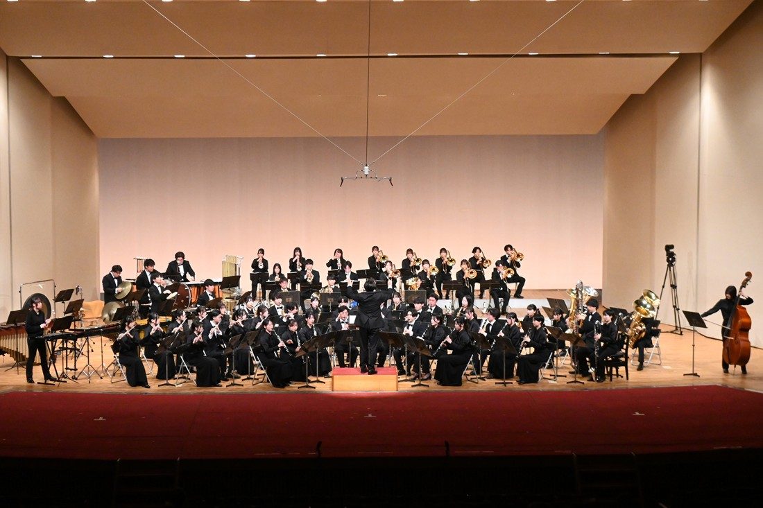湘南キャンパスで活動する吹奏楽研究会が4月5日に、神奈川県・伊勢原市民文化会館で「SPRING CONCERT 2026」を開催しました。本研究会では毎年、春、夏、秋にコンサート、冬には定期演奏会を開いており、今回は付属高校との連携を深めようと、初めて付属相模高校吹奏楽部をゲストに招いて開催。保護者や地域住民ら641名が来場しました。