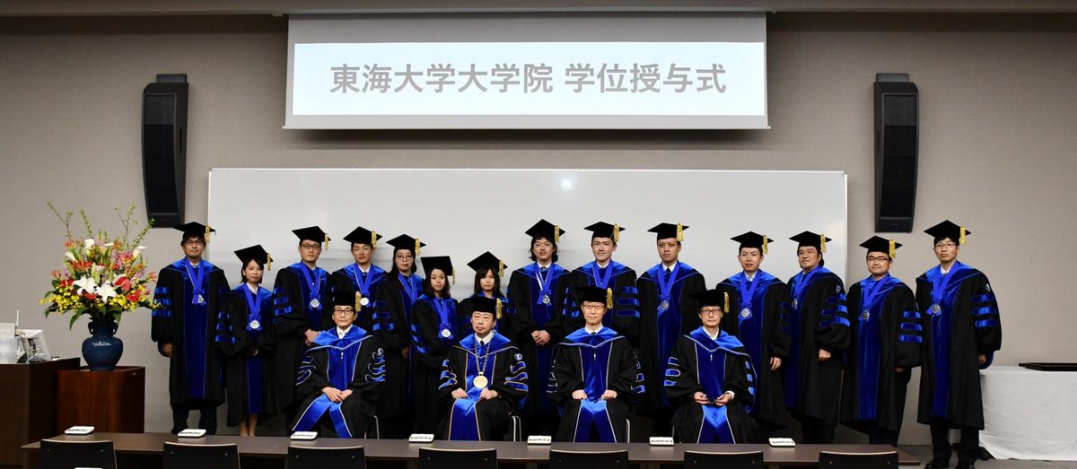 大学院生を対象とした24日の式では、山田清志学長から学位記を、医学研究科の小林広幸研究科長と健康科学研究科の西村昌記研究科長からメダルを授与しました。式辞では、山田学長が英語でスピーチ。「本学大学院を修了した誇りと自信をもって、社会をリードする人材になってください」と語りかけました。医学研究科博士課程の修了生は、「臨床医として、基礎研究の重要性を再認識しました。今後も患者さんの治療に役立つ研究を続けたい」と話していました。