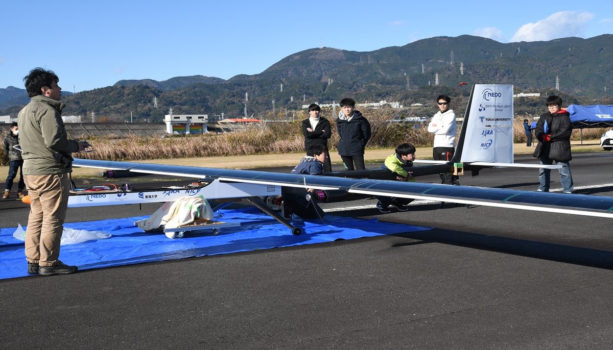 福田准教授は、「ソーラー無人飛行機の開発は、世界的にも注目が集まる研究の一つです。今回製作した機体は両翼約16m、全長約6mと大きなものですが、CFRP製の機体自体の重量は35kg程度でしかありません。NEDOプロジェクトとしての成果だけでなく、今回の受賞に繋がる成果が実現できたのは、参画した企業・研究機関がそれぞれの得意分野を生かしながら連携できたからこそ。この受賞の喜びを糧に、今後も技術・開発を続け、その成果を広く社会に還元していきたい」と話しています。また、「本学では故・平岡克己教授が着想した2012年ごろからソーラー飛行機の研究開発を続けてきました。今回の受賞はこれまで培ってきた技術や知識の大きな集大成にもなったと考えています」と語りました。