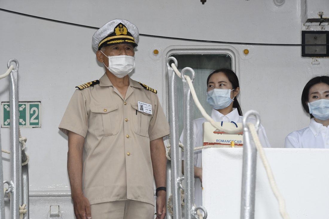 医学部付属病院高度救命救急センターの守田誠司所長ら計10名で構成した第1バッチのメンバーは、19日午前中に同病院のある伊勢原キャンパスを出発。清水港日の出埠頭に着岸した望星丸に乗船しました。出港に際しては、この計画を主導した本学の山田清志学長と山田吉彦静岡キャンパス長ら関係者が見送りに駆けつけ、山田学長が医療チームと望星丸のスタッフに向けて、「皆さんの熱い思いに支えられて小笠原村でのワクチン接種が実現します。すでに多くの方たちが注目し、期待が寄せられています。皆さん自身の健康にも留意し、元気に役割を果たしてください」とエールを送りました。守田所長は、「安全に、確実に、任務を果たしてきます」と力強く応え、上河内船長も「医療チームの任務達成に向けて、安全運航に努めることで、全力でサポートしていきます」と決意を語りました。