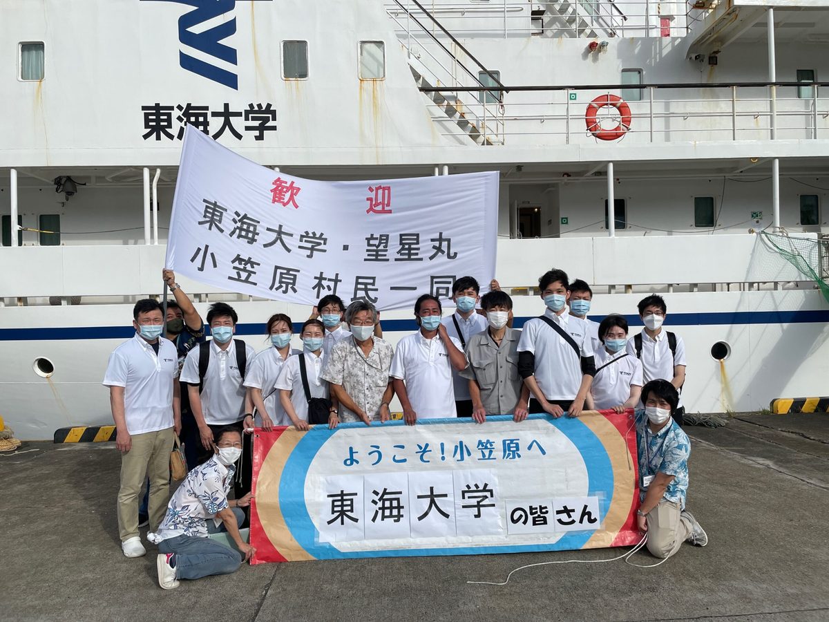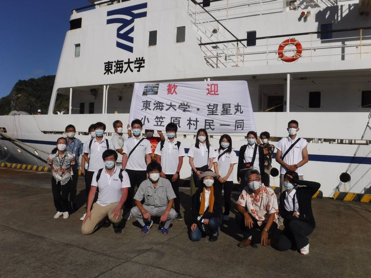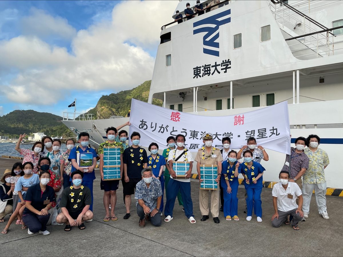 小笠原村でのワクチン接種は、2日間で合計935名が無事に接種を終えることができました。写真は、接種に関わったすべての方との記念写真です。二見港では、心温まる見送りをいただきました。本学医療チームを乗せた望星丸は7月16日(金)に清水港(静岡県)に着岸予定です。