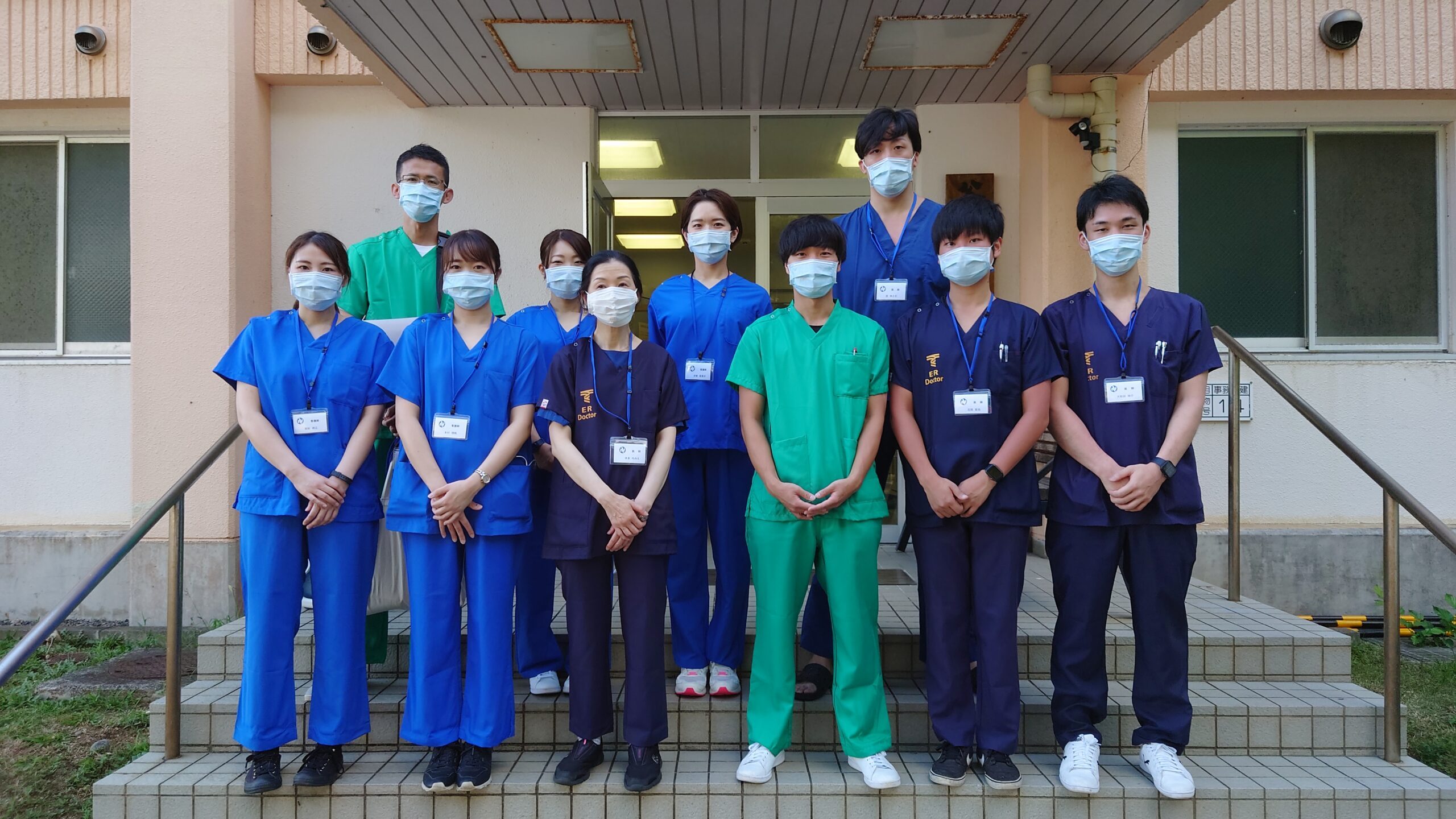 7月28日(木)、1日目のワクチン接種が始まりました。今回のワクチン接種チームには、付属病院病院長の渡辺先生も加わり、島民96名に接種を終えました。2日目は300名を接種予定で、その翌日には、母島へ向かいます。
