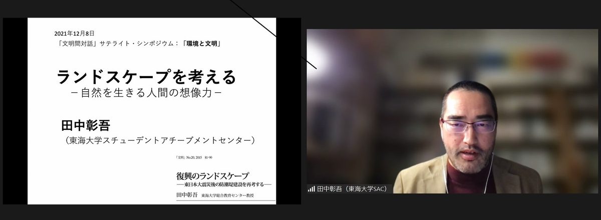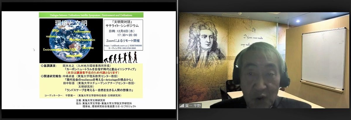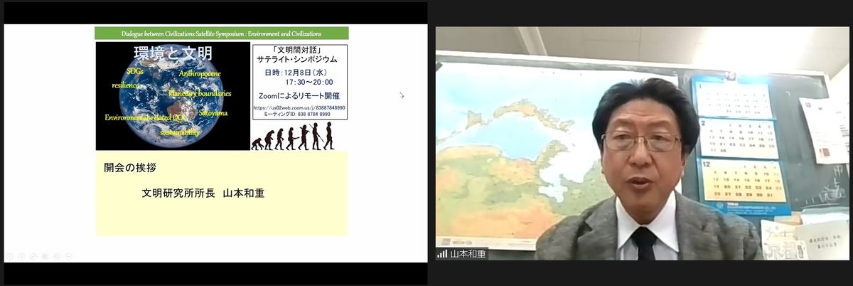 文明研究所では12月8日にオンラインで、「環境と文明」をテーマとする「『文明間対話』サテライト・シンポジウム」を開催しました。本研究所は、本学が建学の理想として掲げている「調和のとれた文明社会の建設」を実現するための基礎的研究の場として1959年に創設。細分化された学問分野を統合して文明に関する包括的な研究を確立し、現代文明が直面する諸問題を総合的な視点で解決することを目指しています。このシンポジウムは、現代文明を考える上で喫緊の課題である環境に焦点を当て、人間の文明が自らを取り巻く環境に対してどのように立ち向かっているのかを学際的な視点から考察し、文明と自然が調和した持続的な共存の可能性について検討しようと開いたものです。
