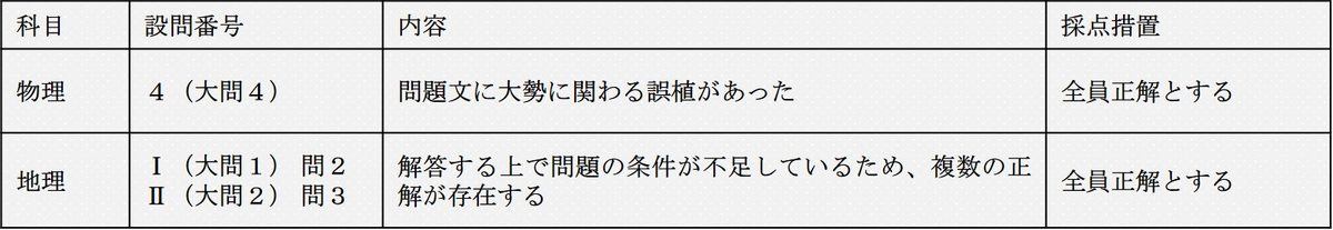 *①物理は「理系」で受験した者、②地理は「文系」で受験した者 - 出題の不適切な箇所