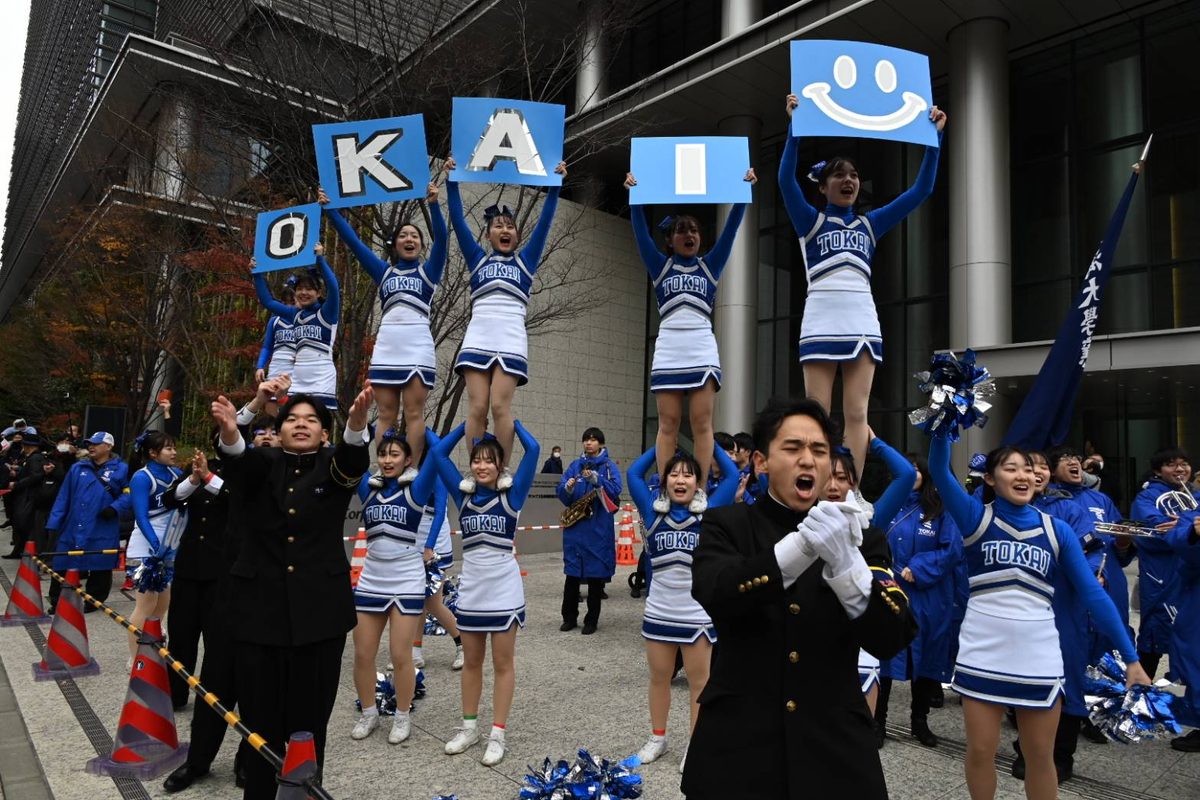 なお、スタート地点・芦ノ湖とゴール地点・大手町の指定応援区域では、往路に続いて湘南キャンパスの応援団とチアリーディング部、吹奏楽研究会の学生らがエールを送りました。2日間、本学の選手たちへのご声援をありがとうございました。