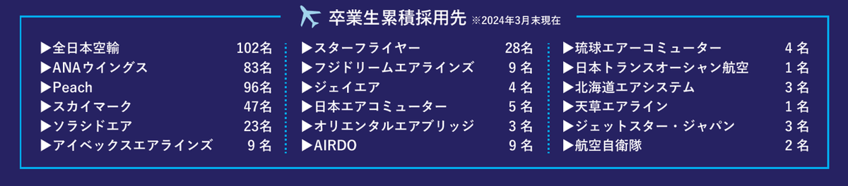 パイロットとして活躍する卒業生420 名を突破(2024年3月現在)