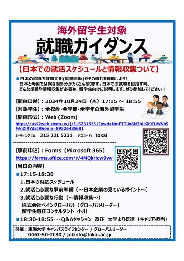 どんな準備・情報収集が必要か、留学生向けに説明します。ぜひ参加してください!