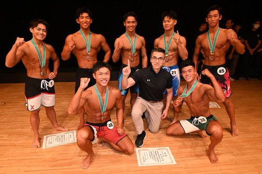 湘南キャンパスで活動するボディビル部が9月29日に、東京都・福生市民文化会館で開催された全日本学生ボディビル選手権大会フィジーク部門団体で連覇を達成しました。ボディビル競技は、全身の筋肉の大きさやキレ、バランスを審査するボディビル部門と上半身の筋肉の形状やプロポーションを中心に審査するフィジーク部門に分けられます。フィジーク部門は、近年の競技者増加を受けて身長別にクラスが分けられており、全日本学生選手権大会は3クラスで実施。団体は各クラス10位以内に与えられる入賞ポイントの合計で総合優勝が争われました。ボディビル部からはフィジーク部門に7選手が出場し、170cm以下の部で山田雄里杏選手(健康学部3年次生)が連覇、安藤空来選手(同2年次生)が2位に入りました。さらに、176cm以下の部と176cm超級でも4選手が入賞するなど、多くの選手が好成績を残し、栄冠を勝ち取りました。