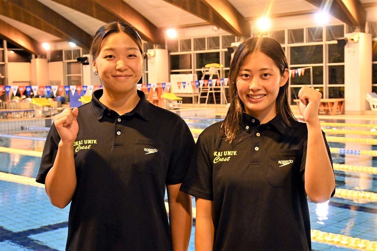 これまでも日本新記録を更新してきた待井選手は、「私にとって日本新記録更新は、過去の自分を超えるという意味もあります。世界最高峰の大会に出場する海外選手のレベルの高さを体感し、“さらにタイムを縮めたい”と強く思いました」と決意を新たにし、小久保選手は、「初めての世界選手権は、緊張と焦りもあり思うように結果を伸ばせませんでしたが、たくさんの経験を積むことができました」と語りました。また、日本代表チームとしては総合6位となり両選手は、「目標の総合5位にはあと一歩届かなかったので、2年後の世界選手権でのリベンジに貢献したい。今後も国際大会に出場して経験を積み、世界のトップレベルで戦える選手になりたい」と話していました。